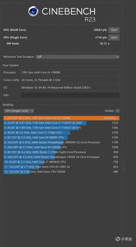 ▼跑個CineBench R23,單線程2146、多線程38883,差一點破4W,小超一下肯定就過了。