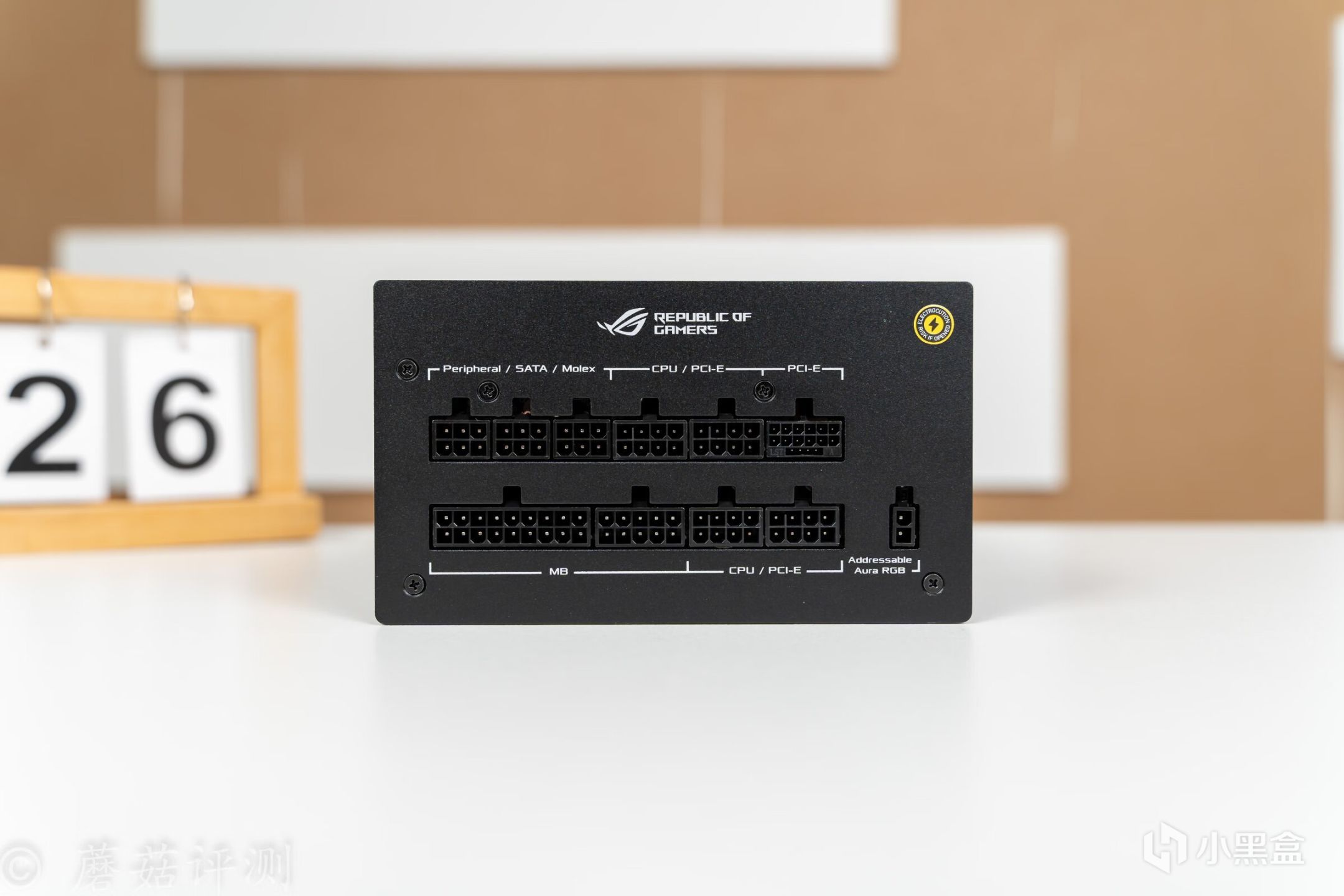▼電源的質感特別棒,外殼部分採用了鋁合金材質,觸感細膩。側面還有一個碩大的ROG的大眼睛,支持AURA SYNC神光同步。