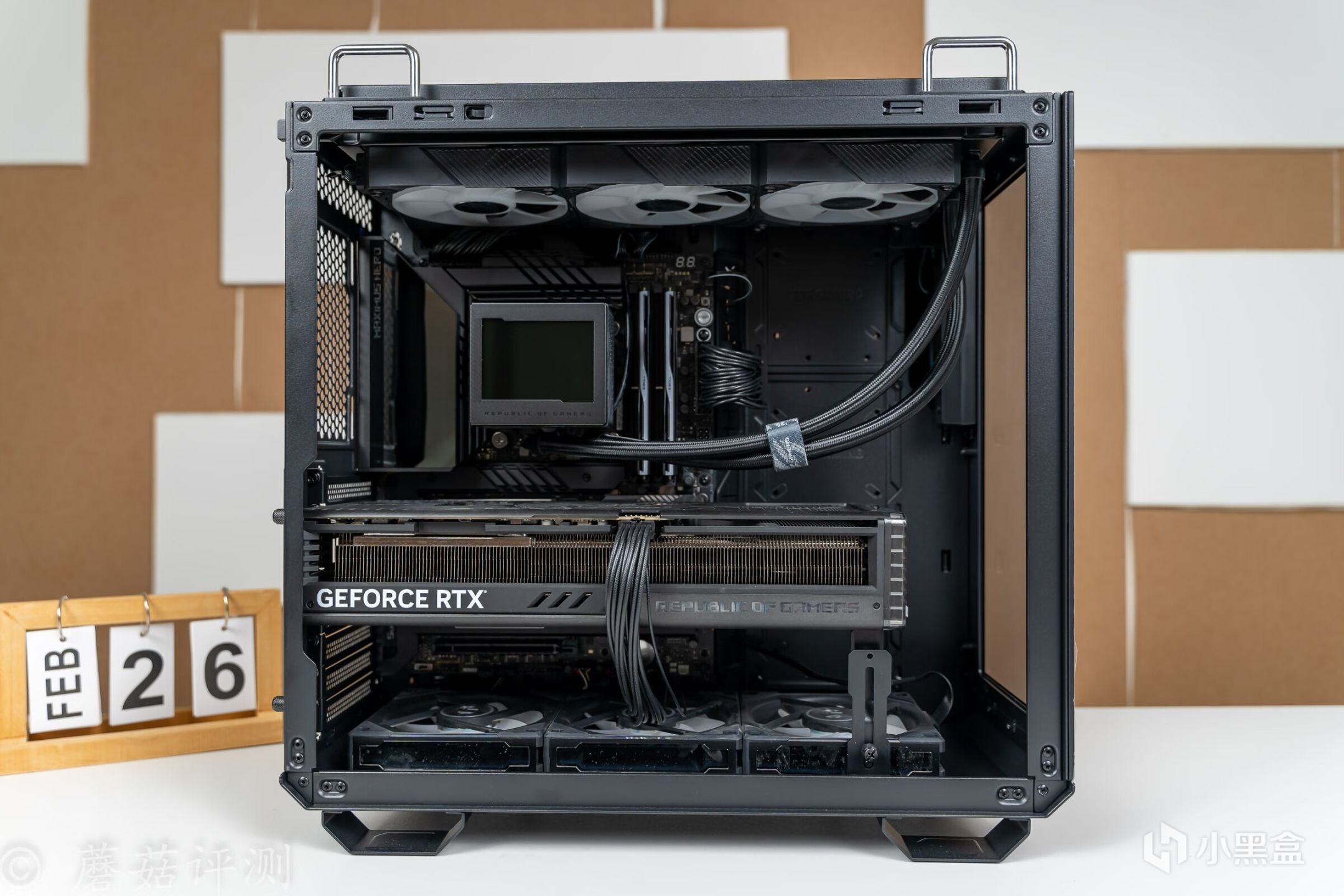 ▼這個機箱的整體效果還是非常漂亮的,蘑菇個人也非常喜歡這個機箱,體積也不大,內部的空間很大,並且這個空間,還有很多可定製的空間,尤其是背面的電源倉,如果想要的話,可以裝很多3.5英寸的機械硬盤,很有意思。