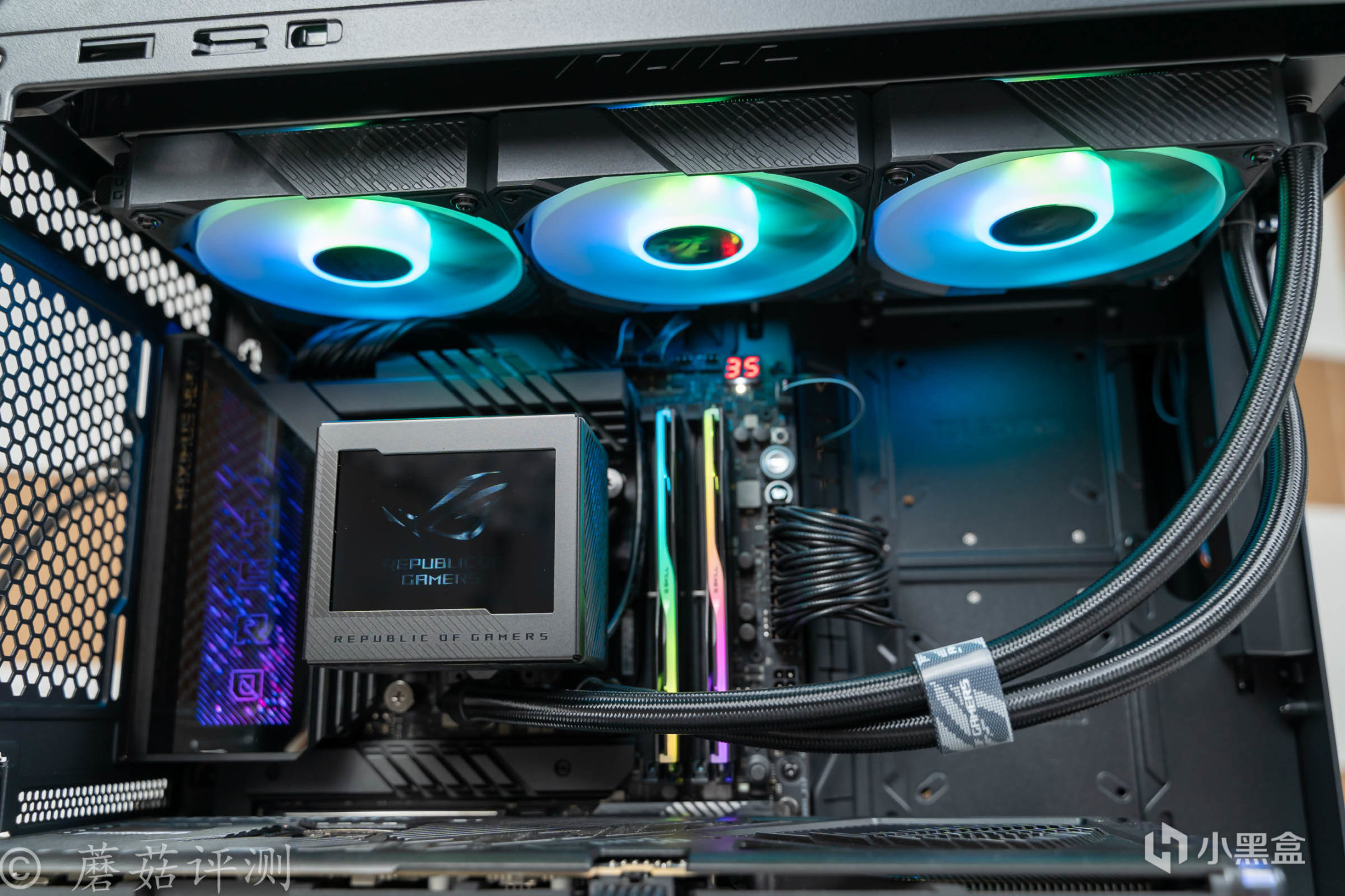 ▼散熱沒什麼好說的,直接選擇了ROG的龍神Ⅲ ARGB一體式水冷散熱器,這款水冷採用了Asetek最新的8代方案,散熱性能更強。