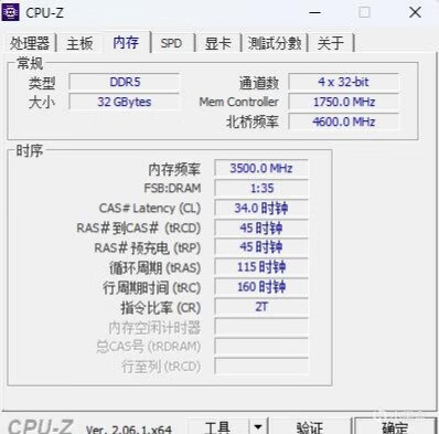 ▼內存這裏沒開7200MHz,只開了7000MHz,時序34-45-45-115。