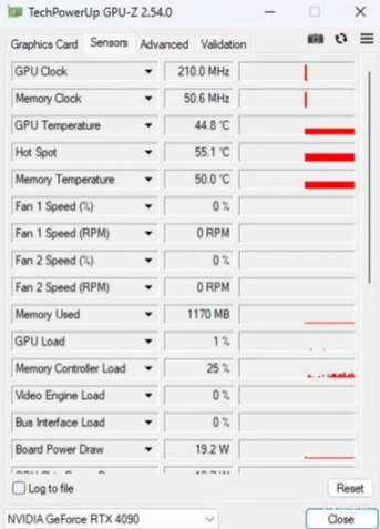 ▼日常待機情況,顯卡核心在45℃左右,散熱風扇停轉。