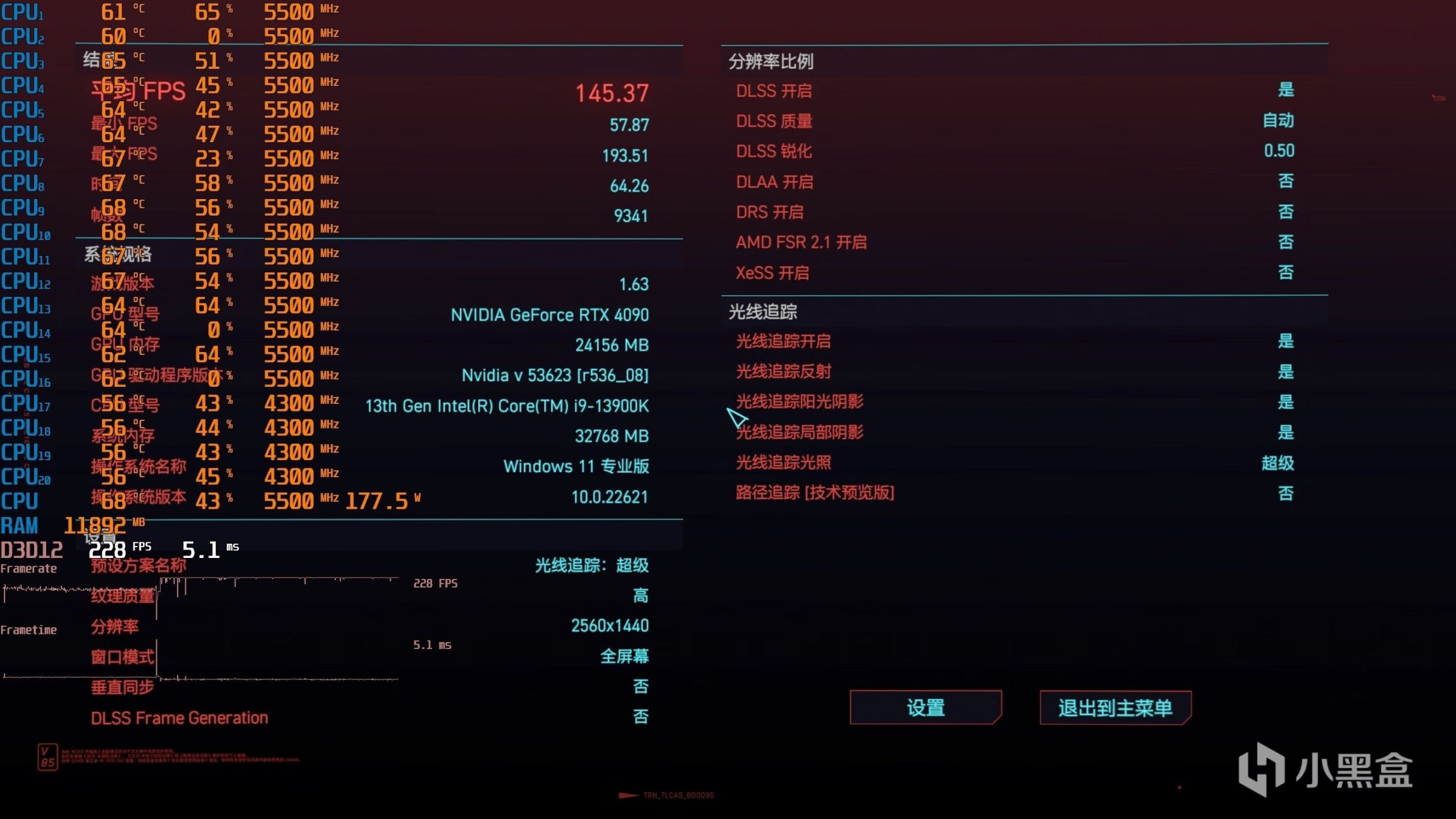 ▼賽博朋克2077,2K分辨率,光追超級特效,大力水手FG關閉。