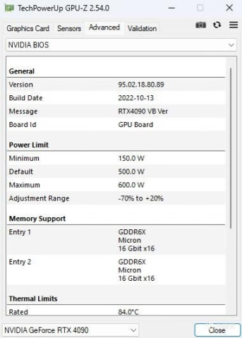 ▼簡單看下顯卡的BIOS,默認功耗在500W,最大功耗去到600W,非常給力。