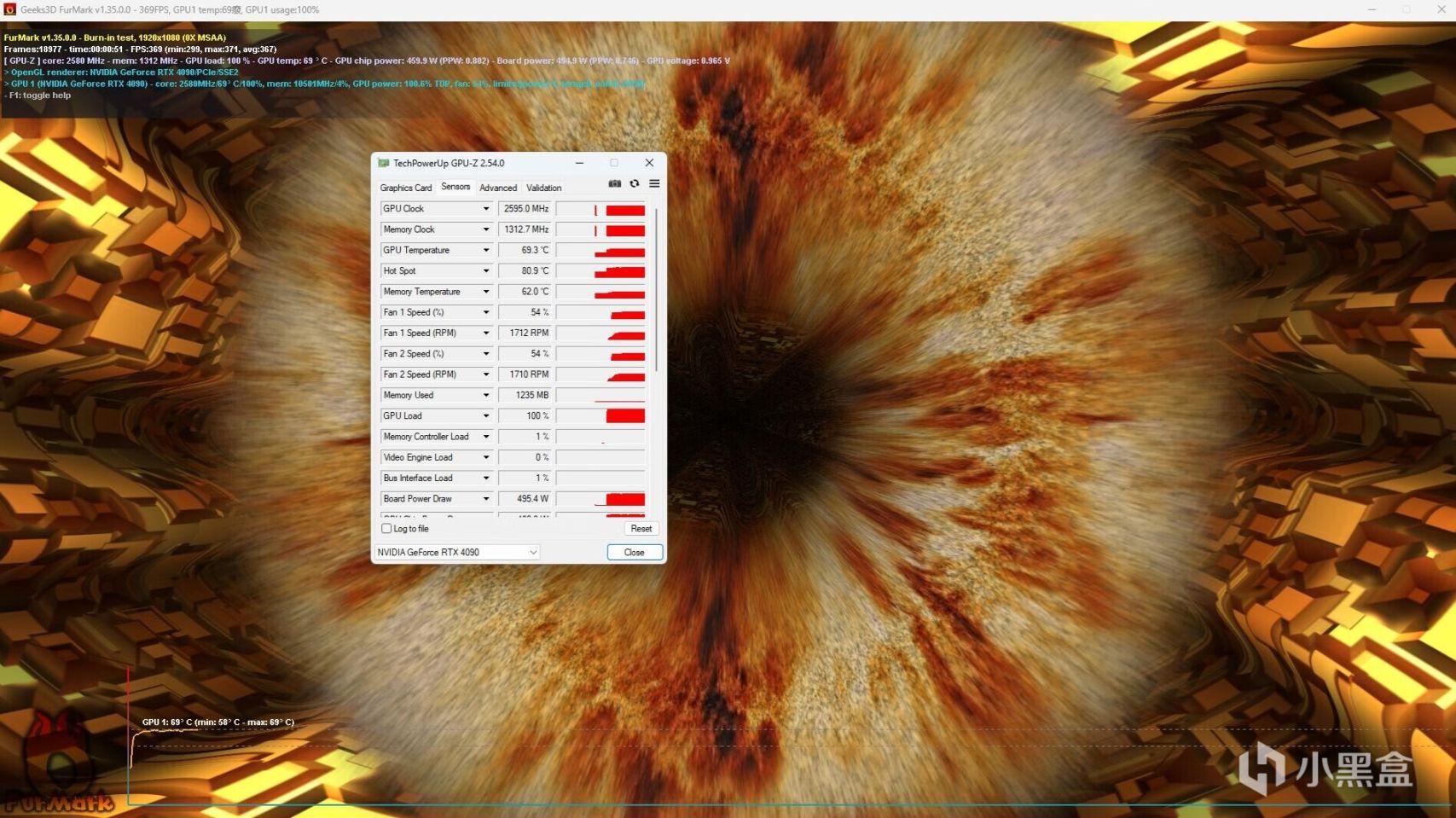 ▼簡單跑個甜甜圈測試,功耗可以輕鬆去到500W左右,核心溫度在69℃左右。