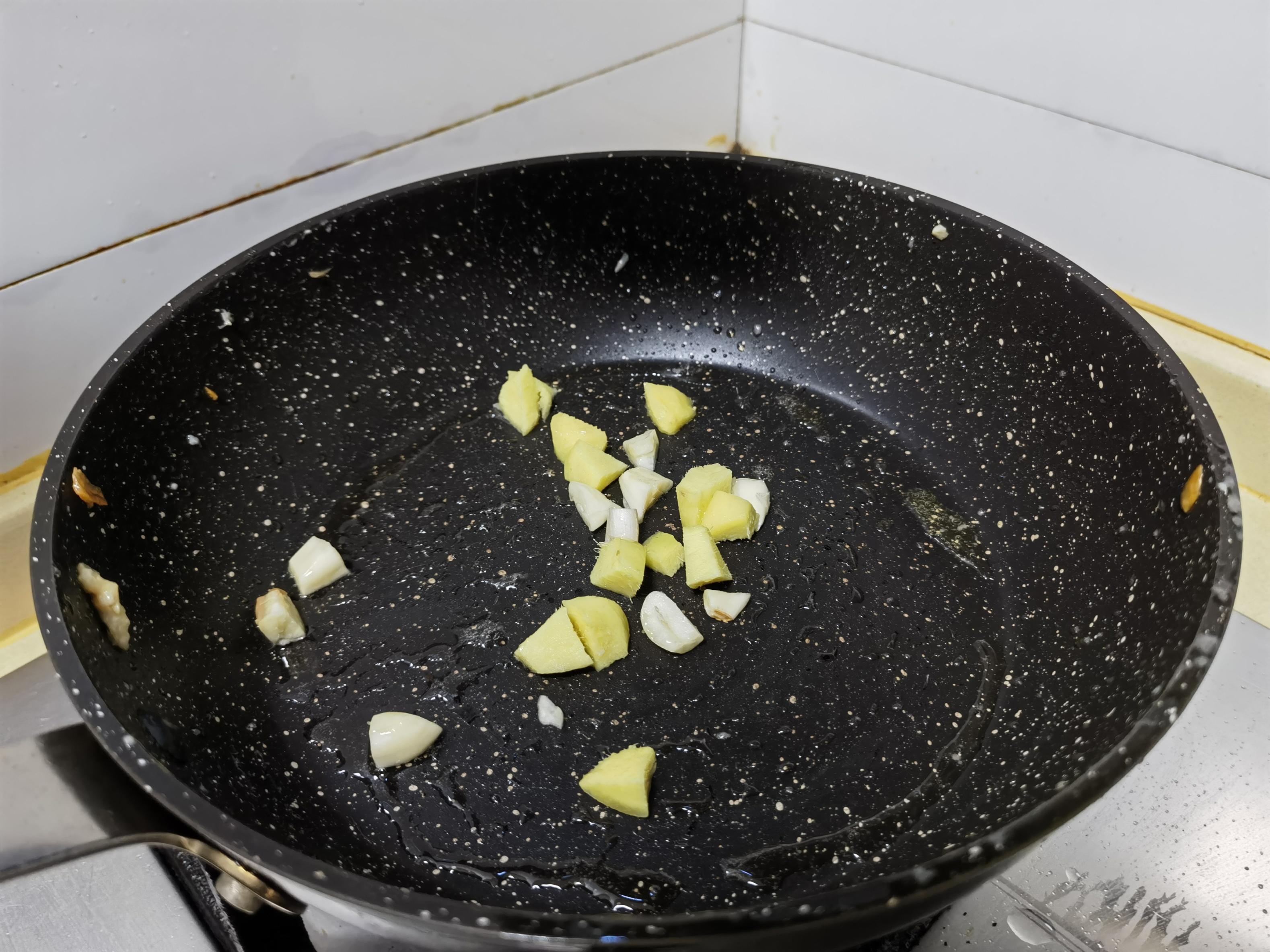 将炒鸡丁的油倒回锅中,油热后下入姜蒜翻炒,