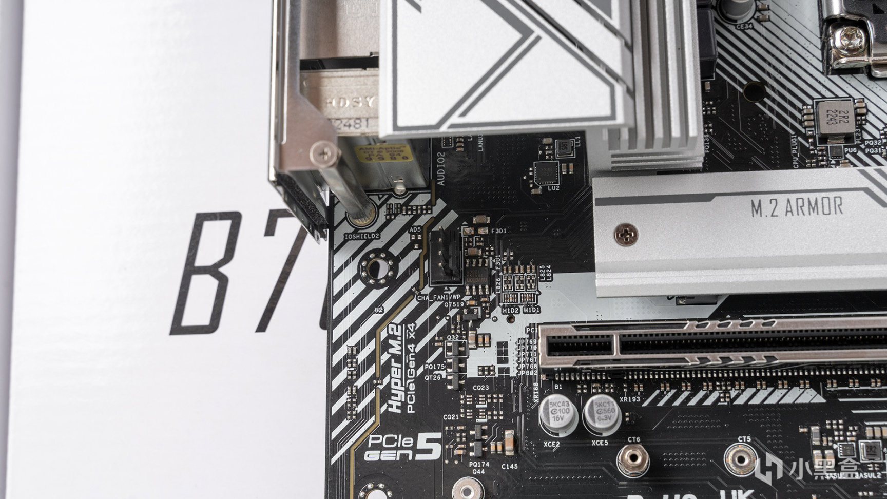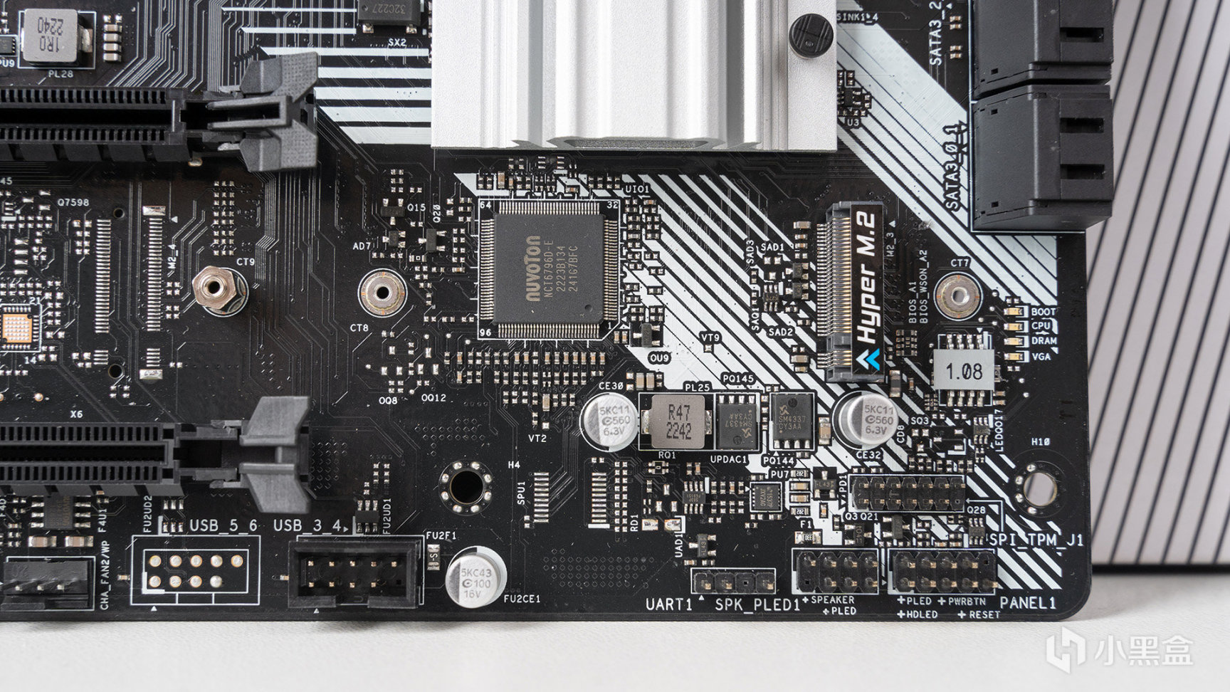 靠左方位還有最後一組CHA FAN,這個接口通常用於機箱後置風扇,MATX板型爲了把散熱片面積做大,一般都會省去,但後置風扇其實作用還挺關鍵的,MATX板型要裝,走線會相對繁瑣。