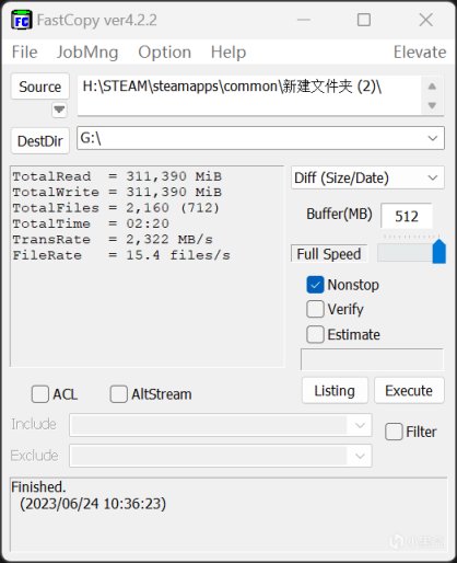 實際應用案例,從另外一個KP260 2TB SSD中,拷貝一個310GB左右的遊戲文件到KP260 PLUS 2TB,裏面包含2160個零碎文件,耗時只需要2分20秒,簡直就是遊戲黨的福音,大容量搬運起來也不費勁。