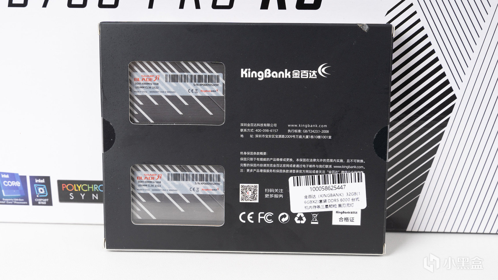 黑刃無燈系列提供DDR5-6000和DDR5-6800兩種頻率選擇,這次上手是性價比很高的DDR5-6000,價格非常給力,屬於市面上最實惠的DDR5-6000 16GBX2套裝,包裝背面有透明後窗設計,能看到內存的一部分。