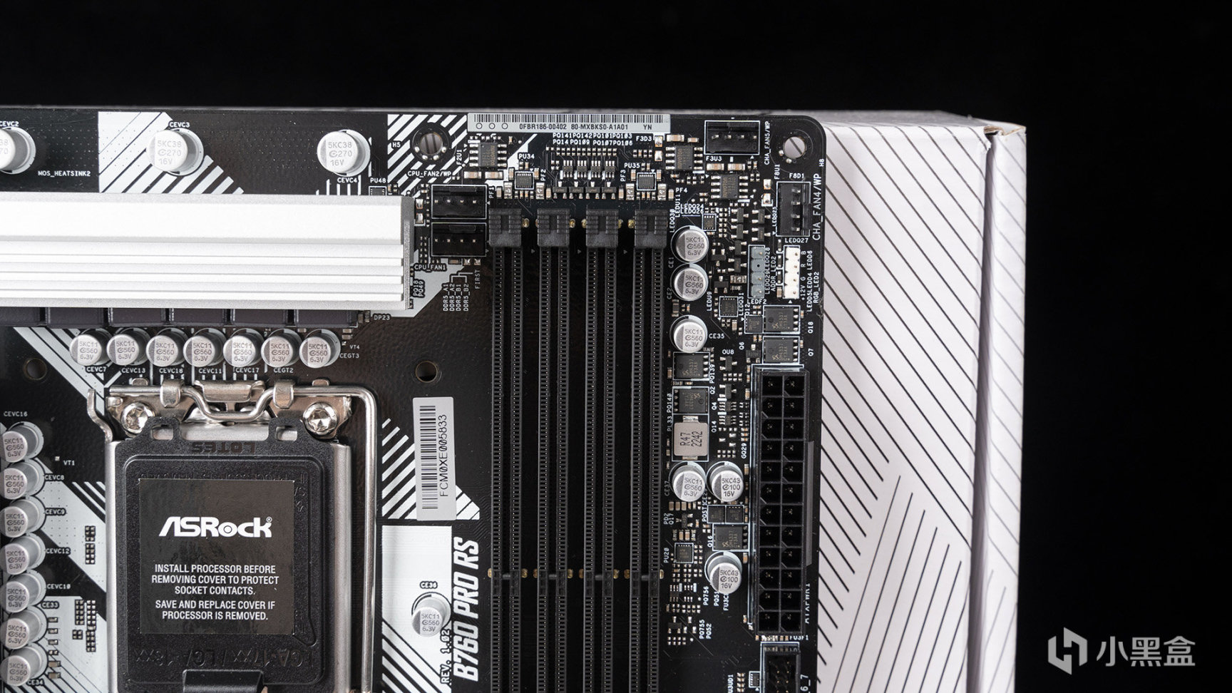 B760 PRO RS迴歸了10代、11代酷睿平臺的白色散熱馬甲設計,在此基礎上主板PCB也有一些白色紋理修飾,作爲入門級ATX定位產品來說還是比較罕見的,適合熱門的白色主題裝機,從主板佈局上來看,元件設計還挺豐滿的。