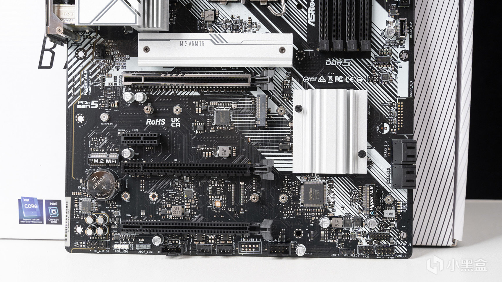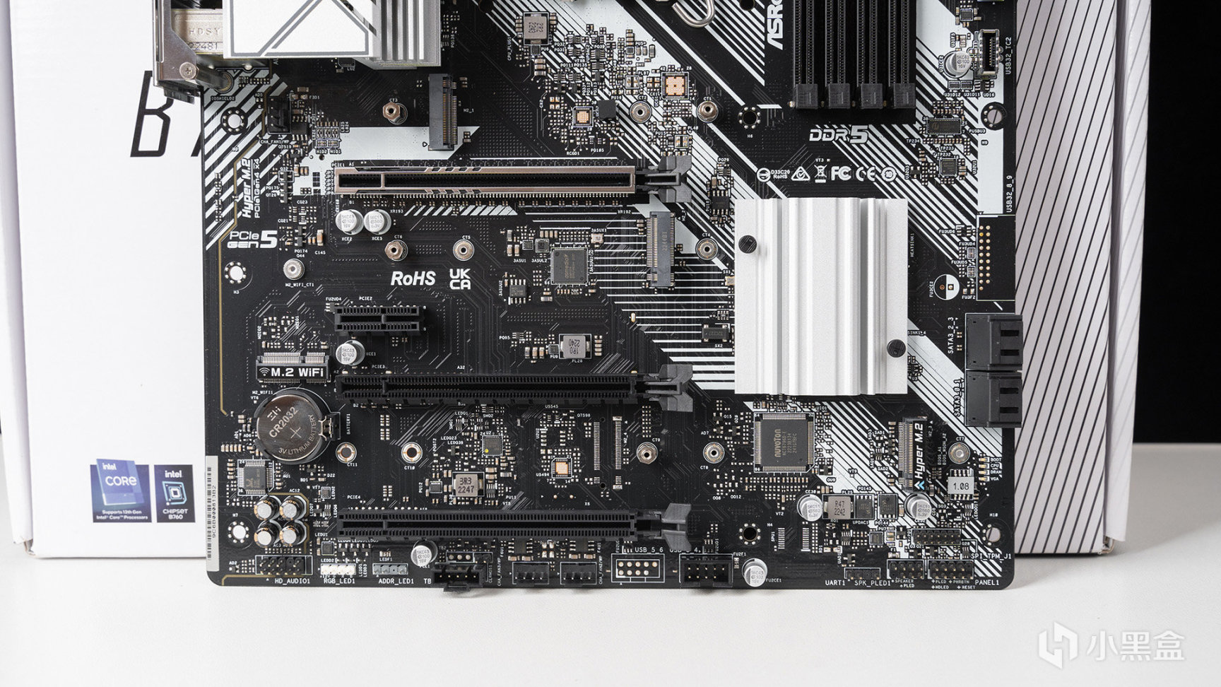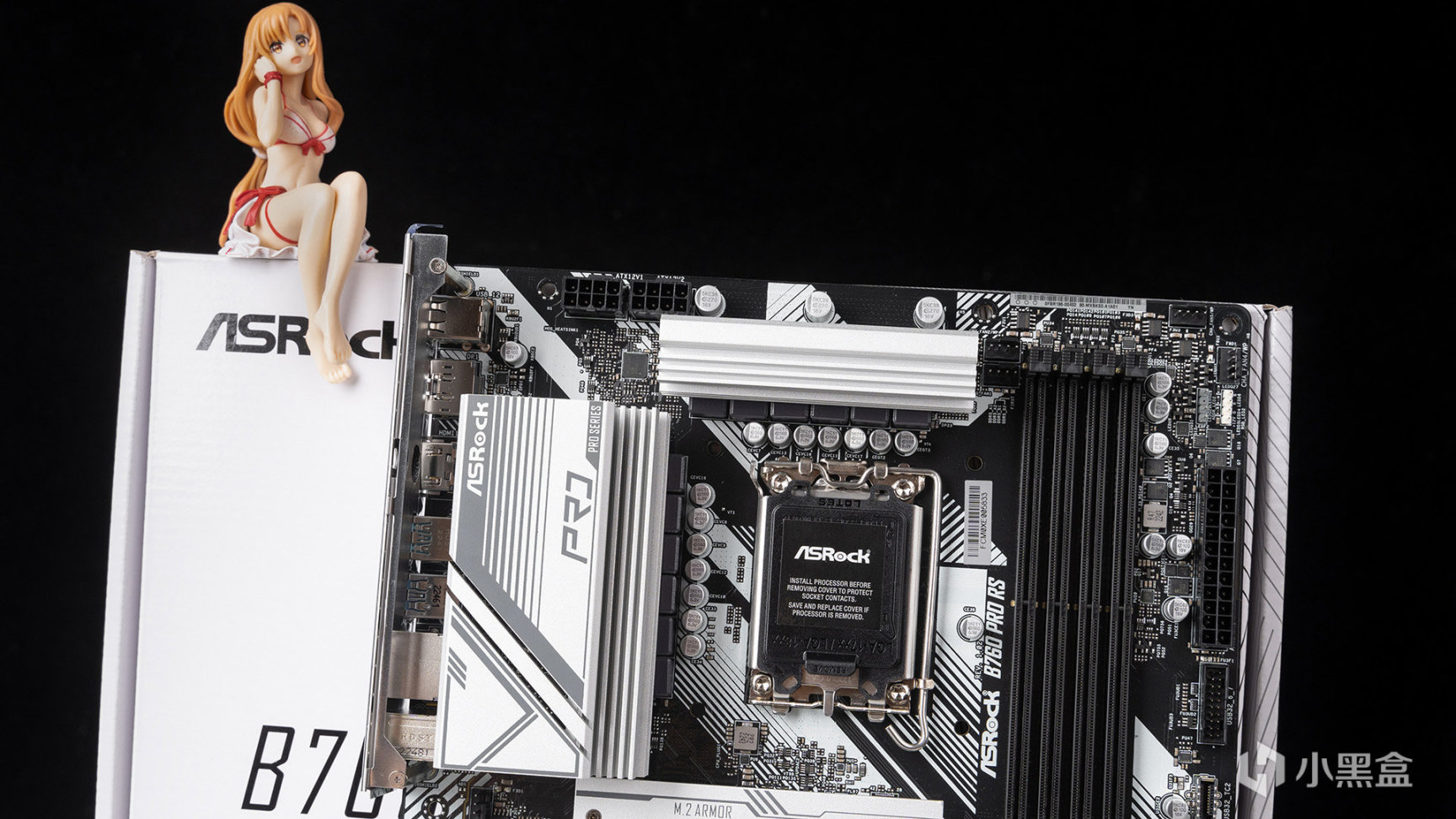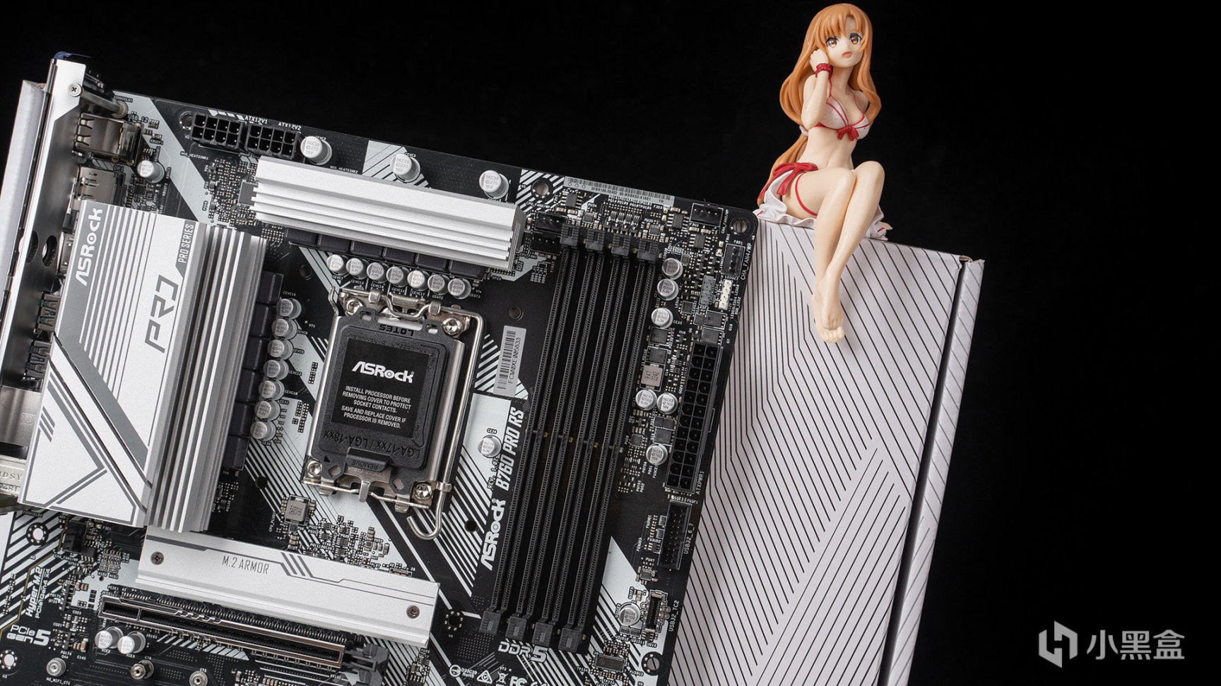 首先來看看主板,來自華擎最新匠心繫列的B760 PRO RS,包裝採用極簡風格設計——正面只是標註了型號,配合純白背景+線條設計,下方是主板相關賣點和技術介紹。匠心繫列目前針對B760劃分了五種型號,還有一款是Z790,可供選擇多有興趣可以去官網看看。