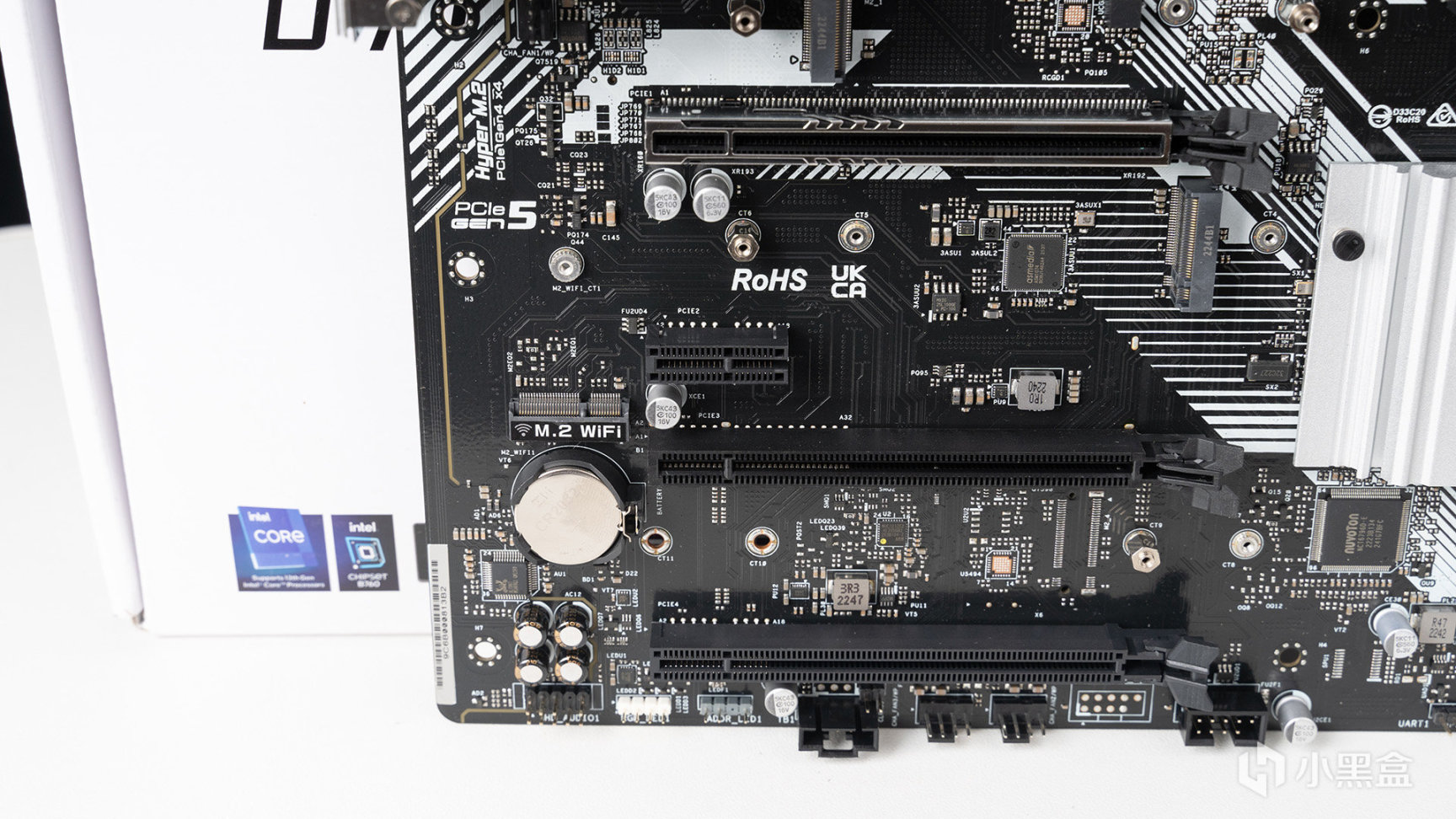 主板在左下方位置,預留了一個2230型的M.2 WiFi插槽,可以支持CNVio/CNVio2協議的網卡,硬核比較推薦AX210自購就好,適用性強。