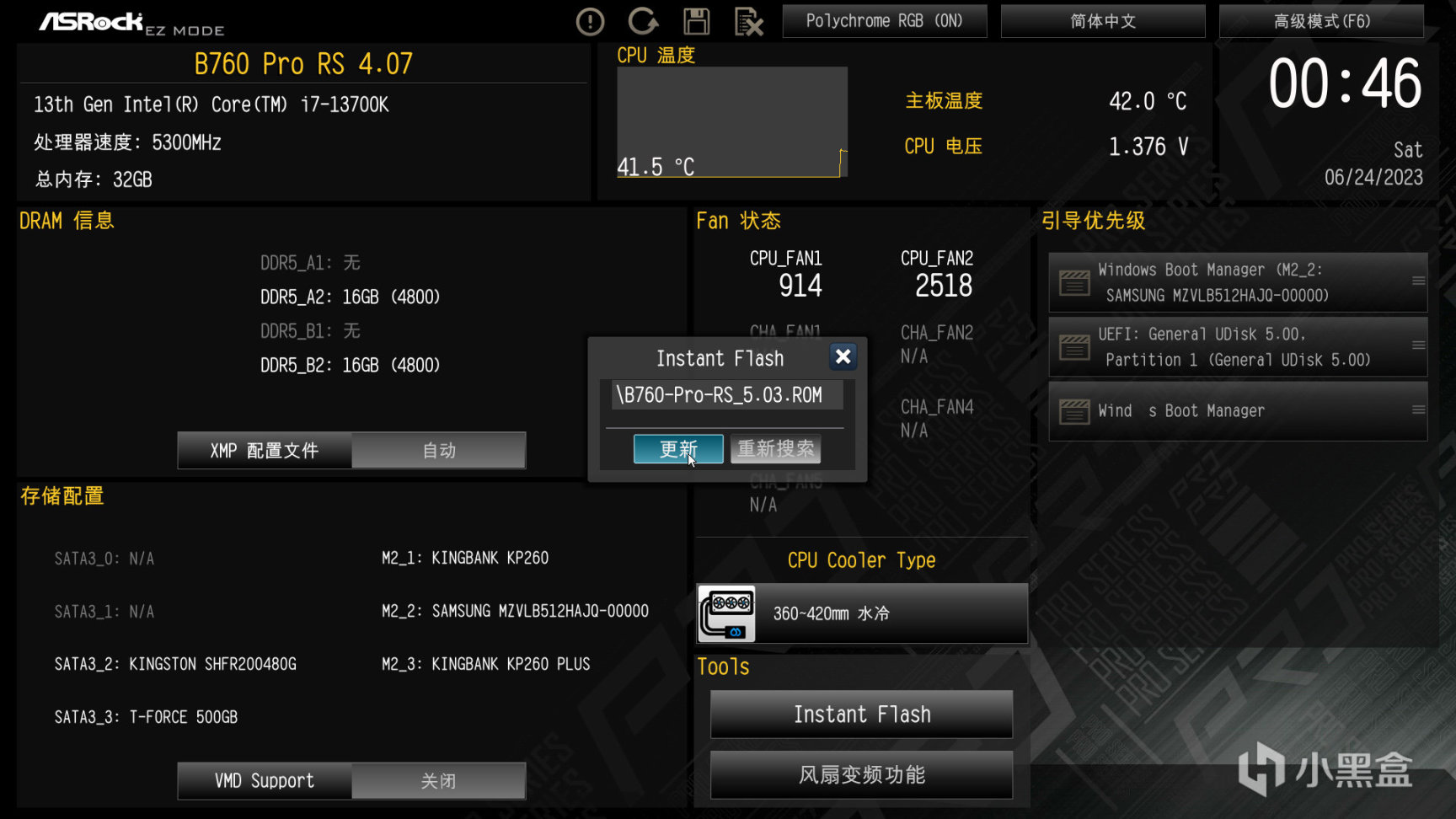 省流:618期間的價格,華擎B760 PRO RS 1199元,金百達黑刃DDR5 6000 16GBX2 579元,KP260 PLUS 2TB 568元
