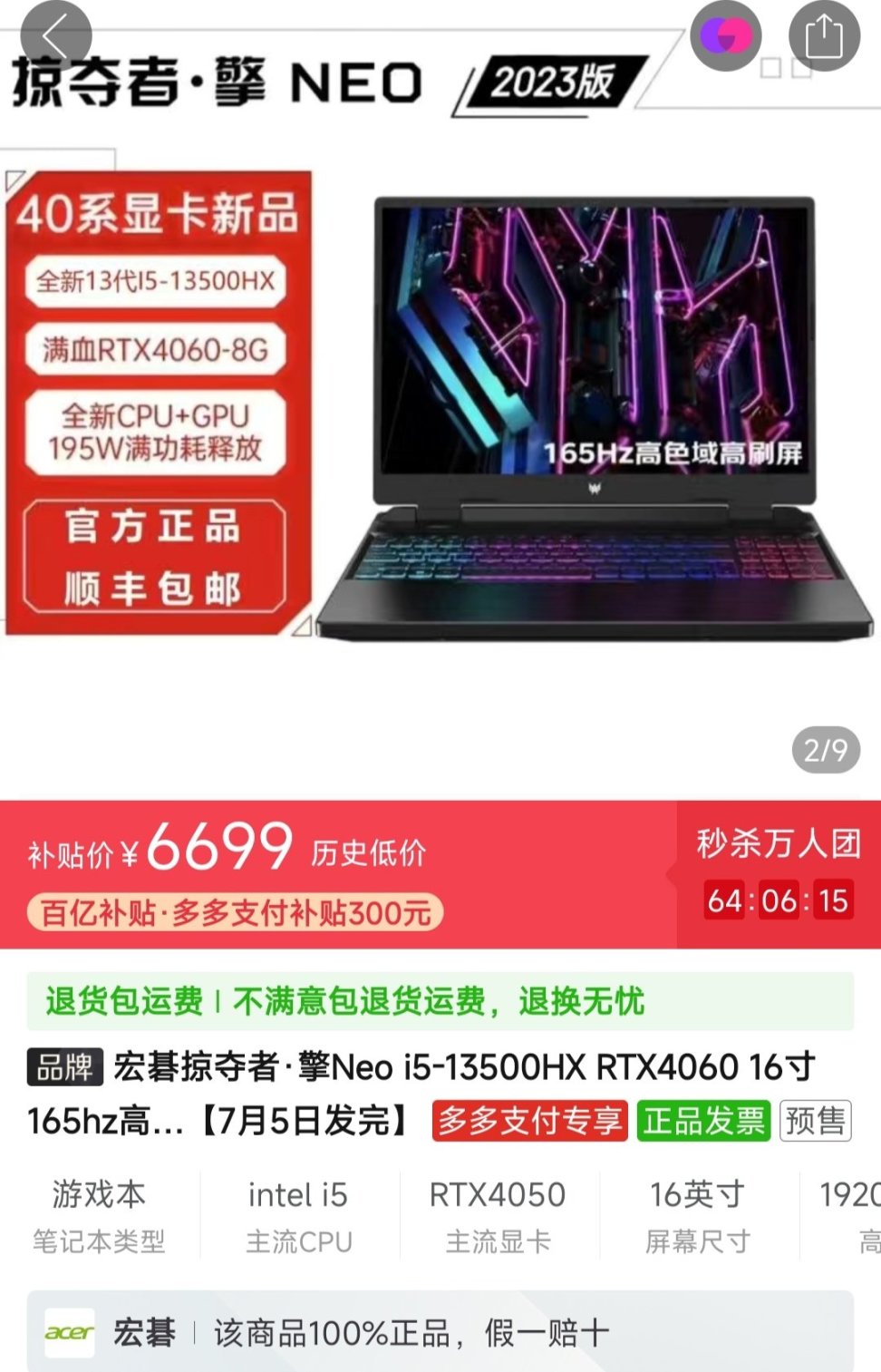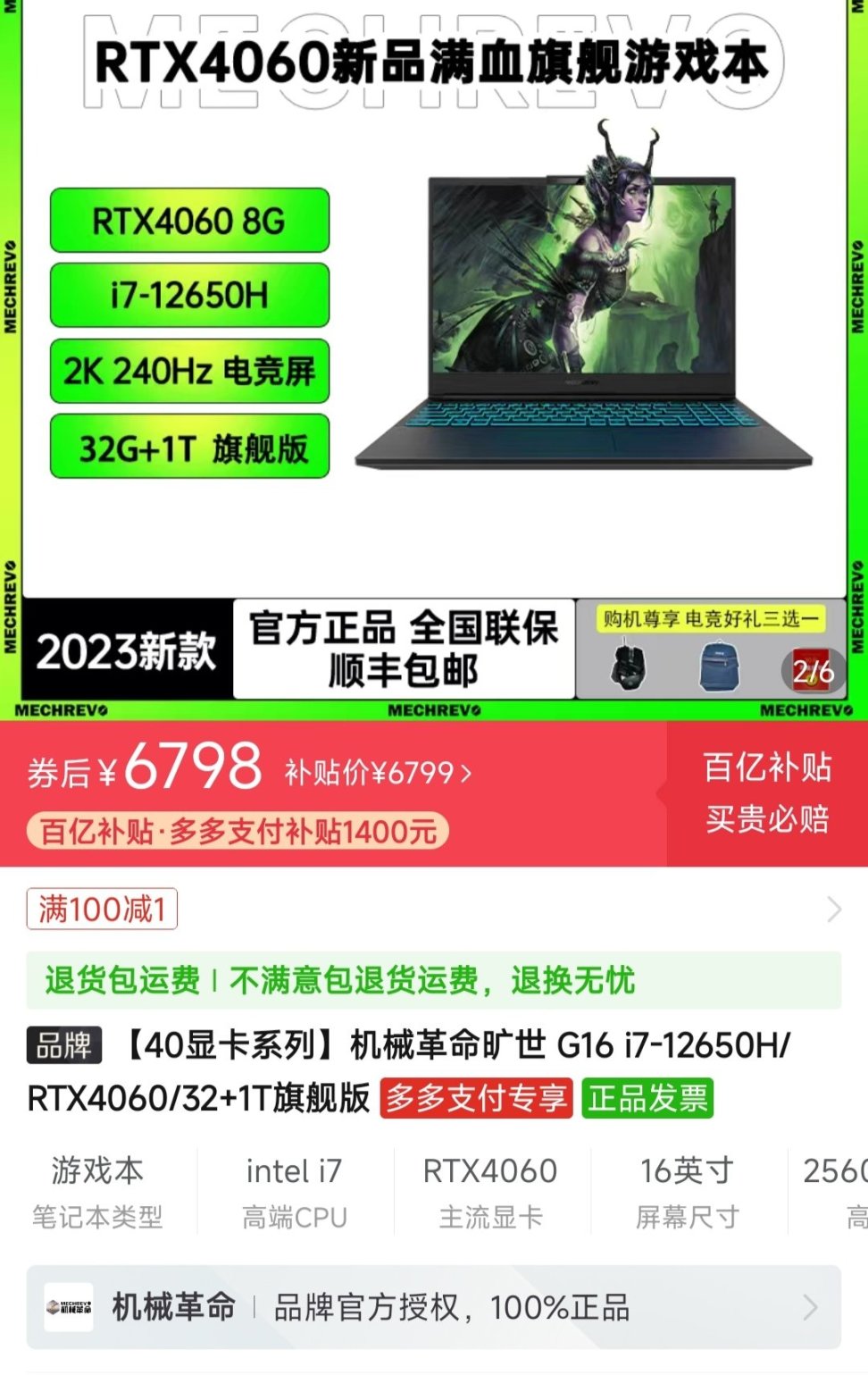 2. 機械革命 極光Pro 2023(極力推薦)-5999到6299元(拼多多5999元)