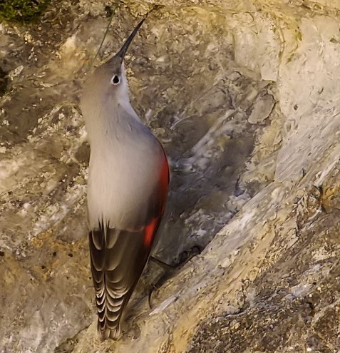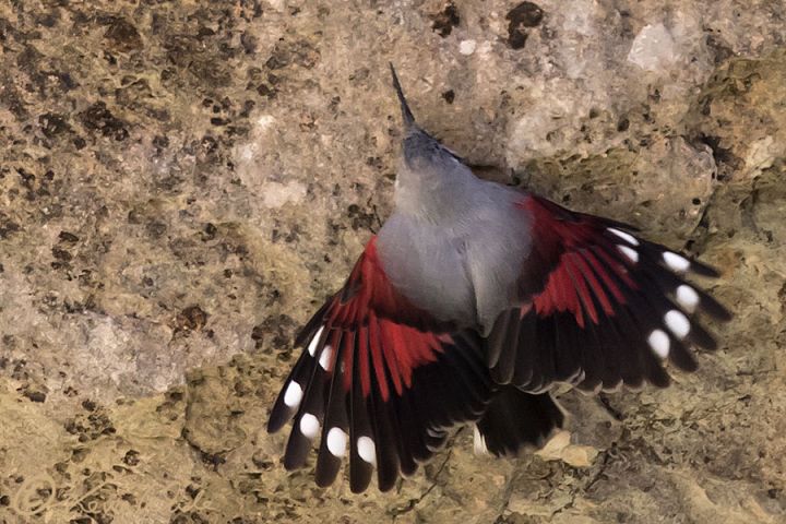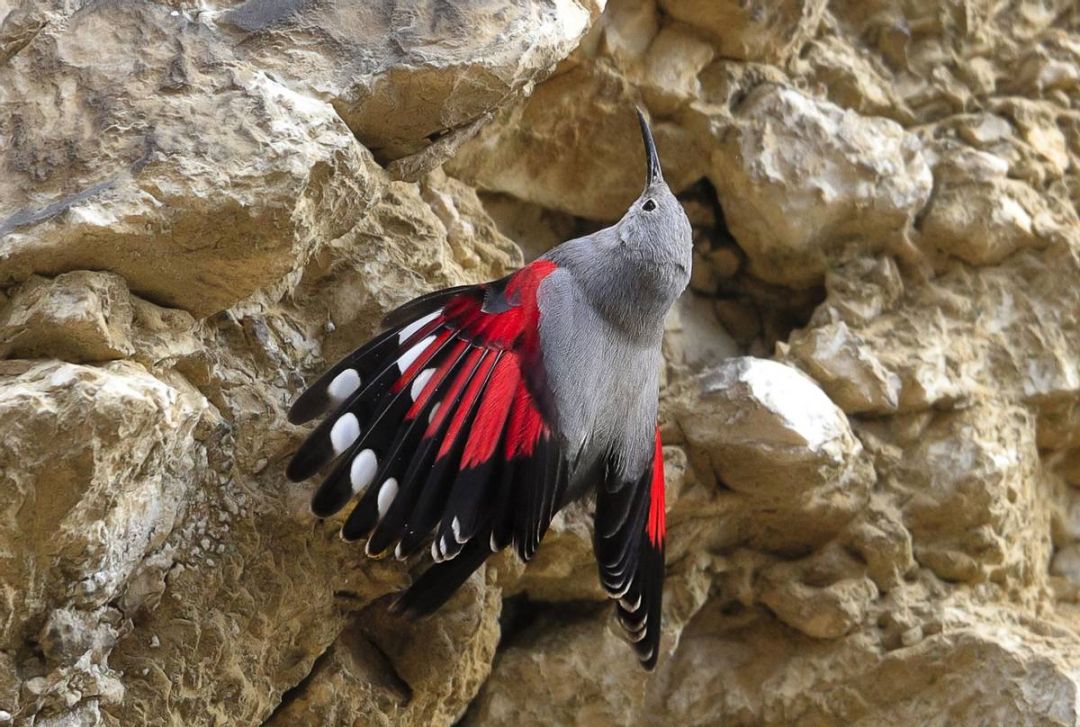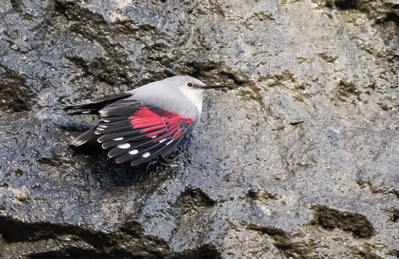 当翅膀折叠时大部分羽毛会隐藏起来,所以收起翅膀时在岩壁上不易被发现。