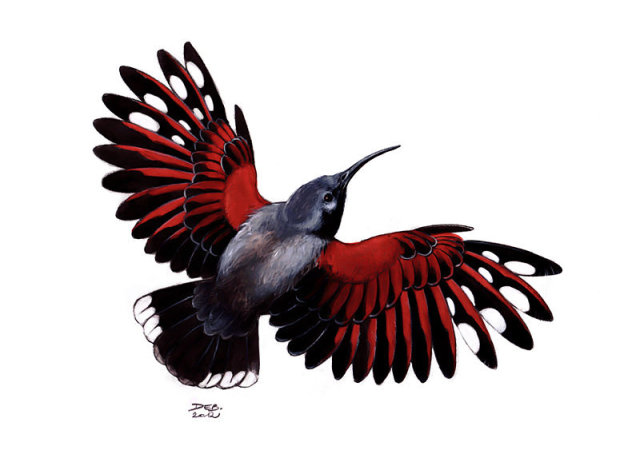 它们飞行时相当引人注目,黑红相间、布有白色斑点的双翼,使其看似一只巨大的蝴蝶。