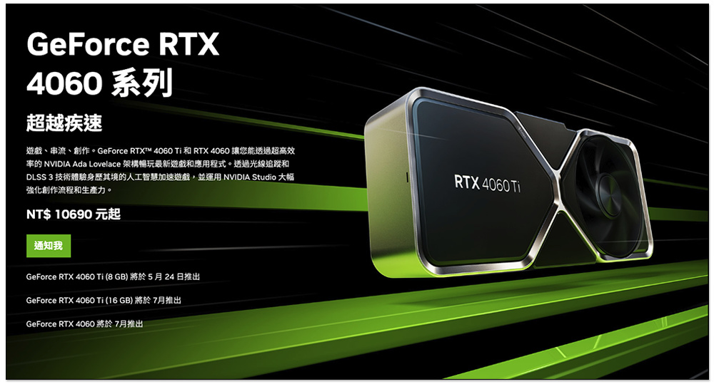 除了 GeForce RTX 4090 Ti,最近 NVIDIA 也有多張顯卡即將開賣,像是GeForce RTX 4060會在 6 月 29 日上市,GeForce RTX 4060 Ti 16GB 則是下個月: