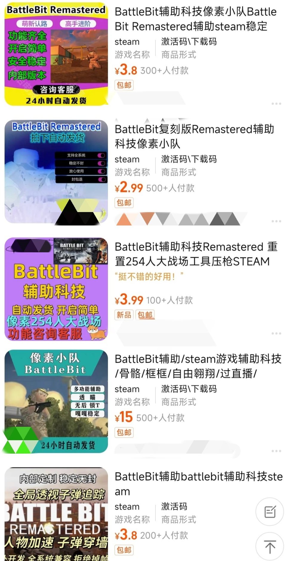 值得一提的是,淘寶搜索"BattleBit",各類價格不等、功能不同的輔助,銷量都在百單以上。只能說外掛廠商和開掛的趕緊死。