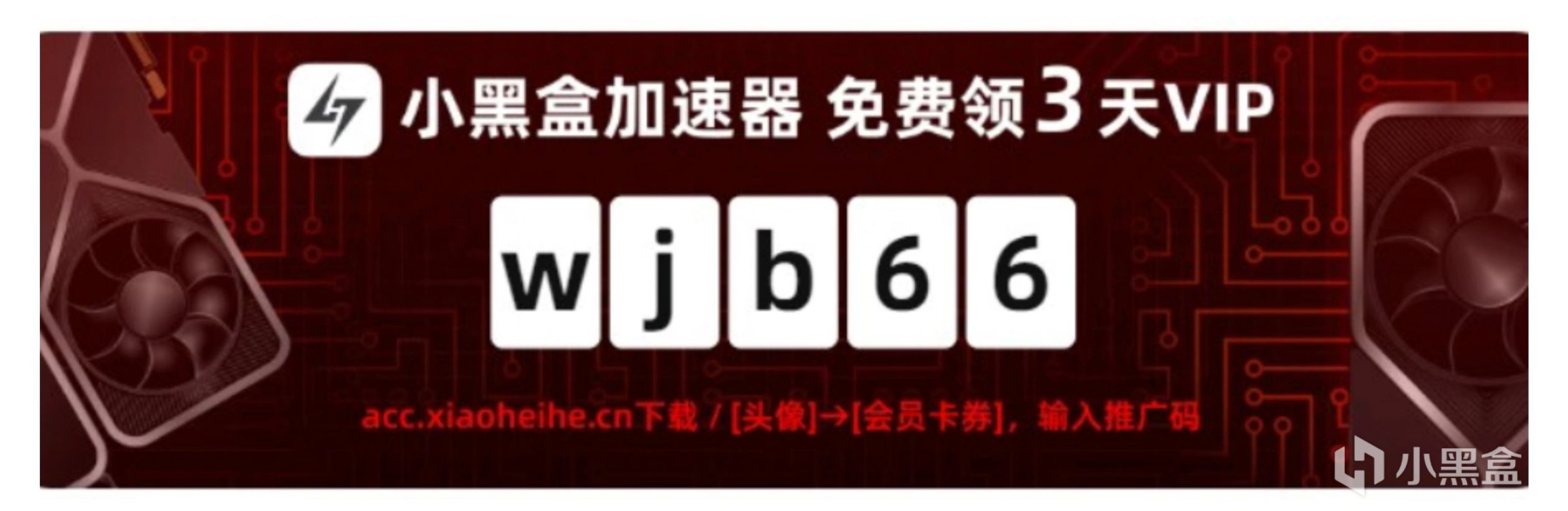 在小黑盒pc端加速器輸入kenan66或wjb66或wow66,即可每月分別白嫖三天會員時長。
