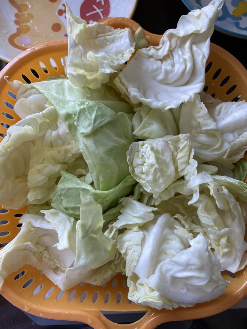 7.凉拌包菜:包菜洗净切丝,加入少许盐把包菜水分揉出来然后加入蒜末,醋,淋一勺热油,滴一滴麻油加少许鸡精并搅拌均匀就可以吃了