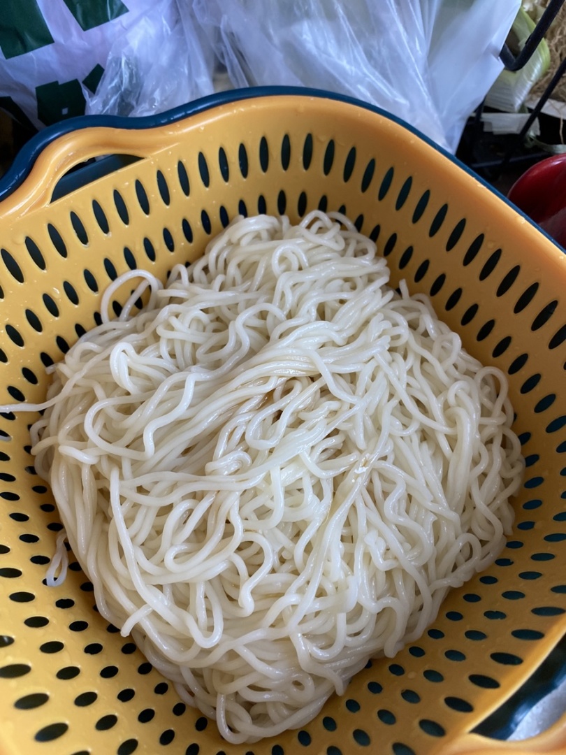 5.起锅烧水下面,面煮7分熟捞出用凉水冲一下面条别煮太软了!!!!!!!!!煮久了后果就是跟我一样失败了