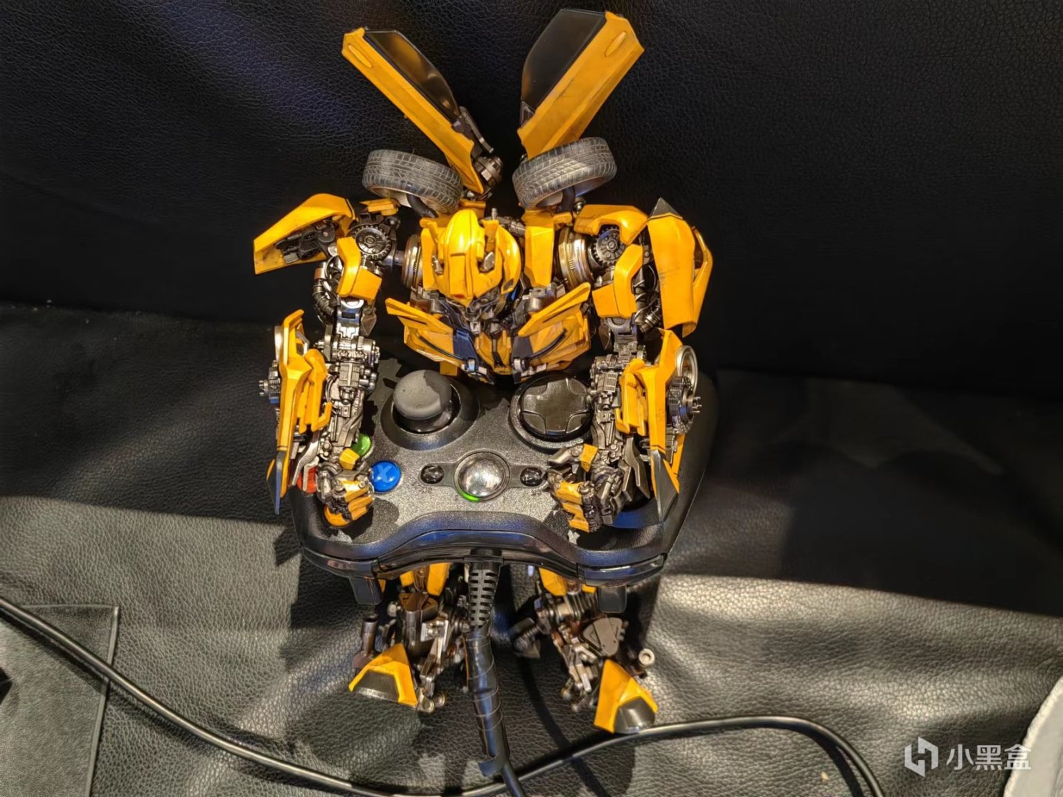 大黃蜂有很認真在研究手柄怎麼使用,但還是操作很菜。