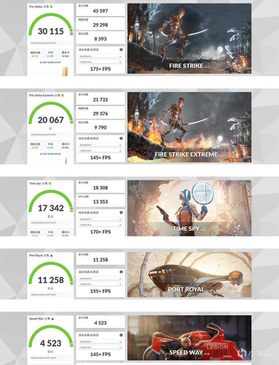 影馳 GeForce RTX 4070 金屬大師 OC,3DMARK 各種模式下的跑分情況。