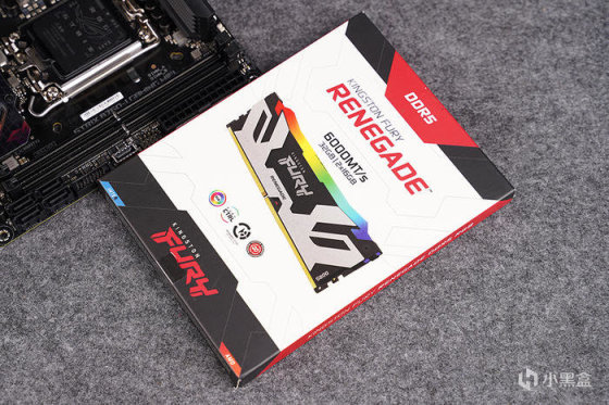 搭配內存金士頓 FURY Renegade 叛逆者系列 ARGB DDR5 6000 16G×2 ,包裝正面印刷有內存本體展示,搭配本體的線條圖案修飾,FURY LOGO,對應的規格等信息。