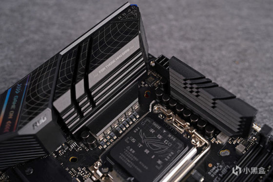 單 PCIe5.0 ×16 插槽,帶有金屬裝甲強化處理,板載 2 個 PCIe 4.0 M.2 接口,正面直連 CPU 最大支持 PCIe 4.0 x4,配有散熱裝甲和散熱背板,雙面強效散熱以降低 SSD 溫度。