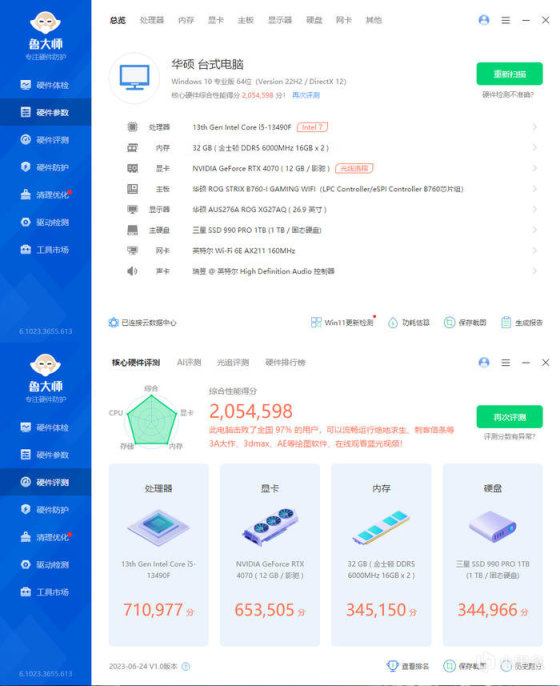 搭配散熱器用的是喬思伯 HX6200D,應付 13490F 綽綽有餘,且兼容高馬甲燈條,搭配內存用的是金士頓 FURY Renegade 叛逆者系列 ARGB DDR5 6000 16G×2,規格夠用!顏值燈光也還不錯。