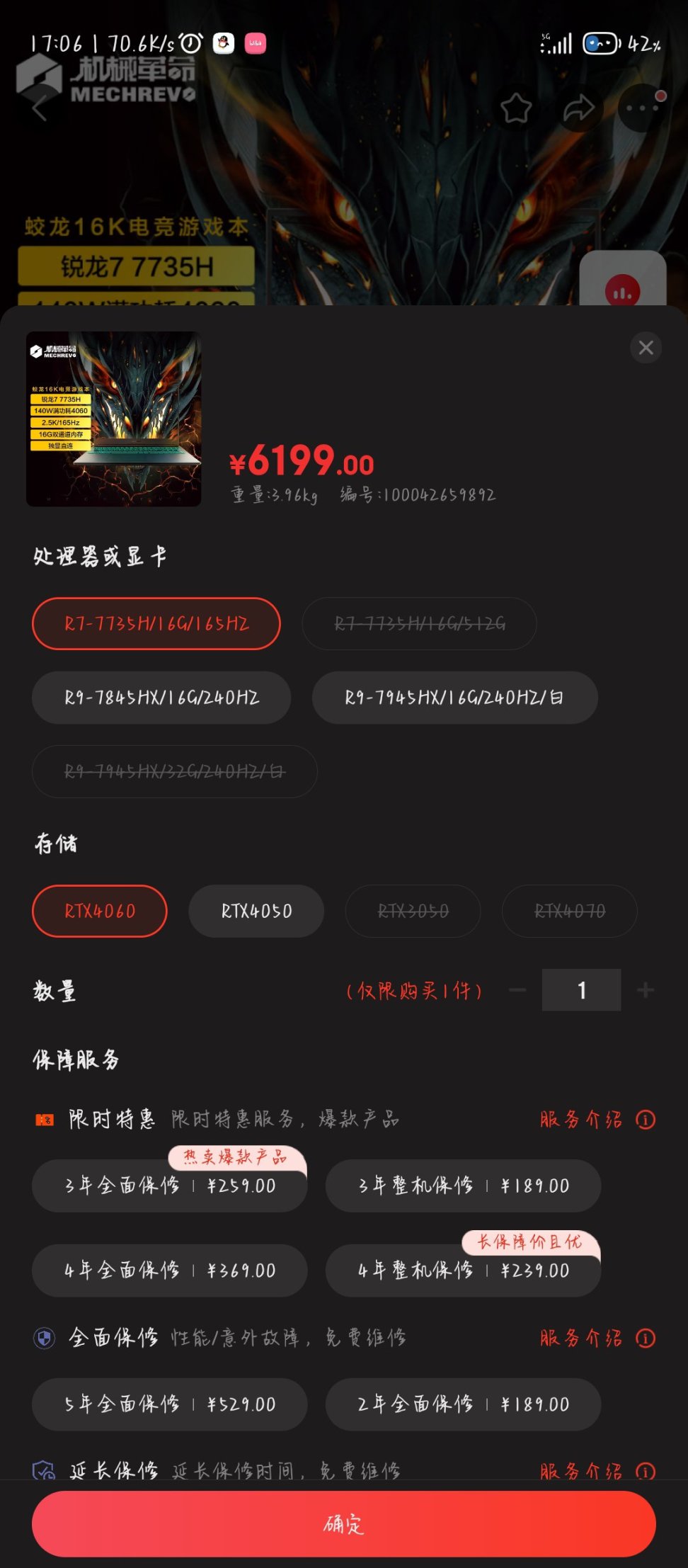 其次是下面那些所謂的增值業務,基本上沒啥用,保修是廠家自帶的,平臺、店鋪保修購買毫無意義;