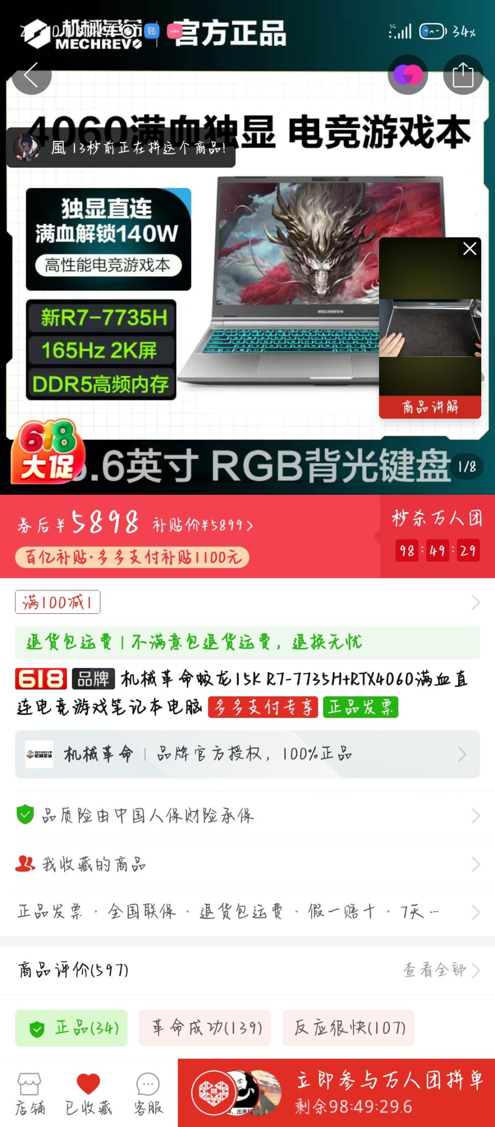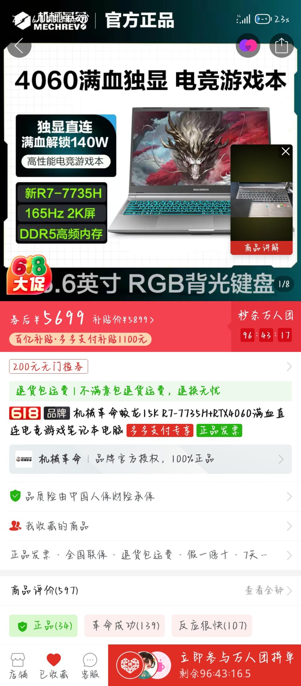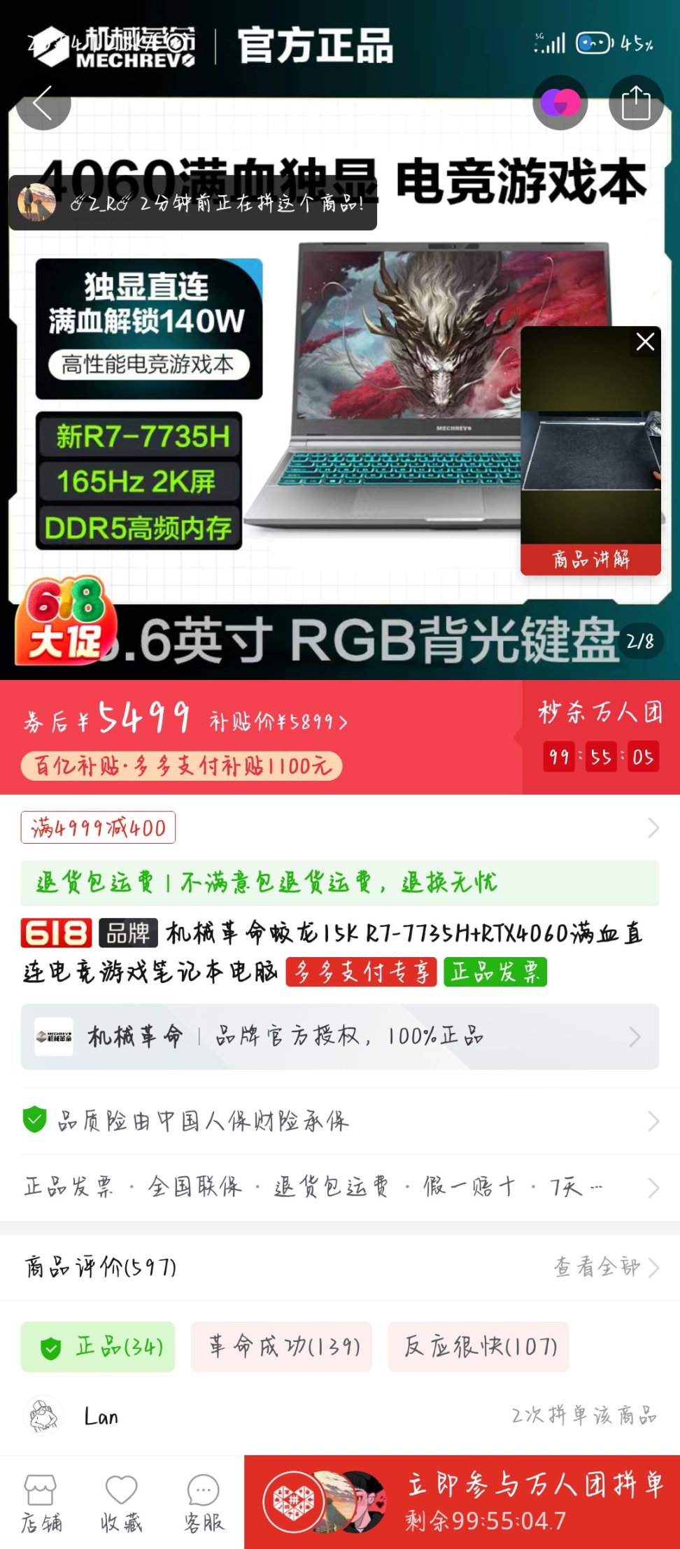 同一個商品,30分鐘價格變了2次,後續是價格爲5699。