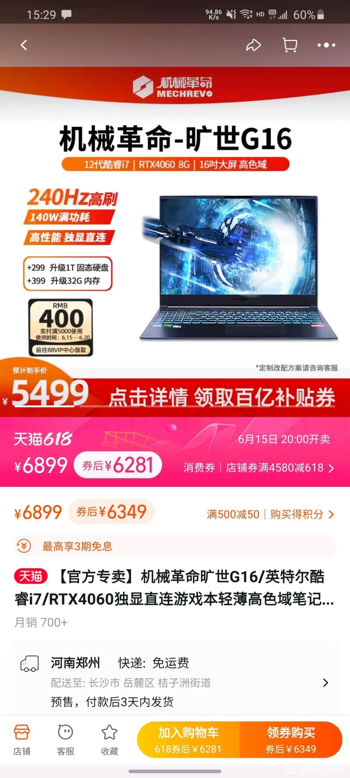 某寶平臺上,5499的g16,需要兩張券,只用一張(隨便哪張)都可以買,也就是5899,但是你要是用兩張就不能買了。因爲這個價格,貼吧,q羣好多人都買了88vip,結果打水漂了。