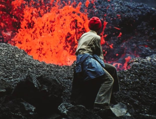 鏡頭中的卡蒂婭和莫里斯,從開始的的青澀質樸,到後來的駕輕就熟。起先,她會拿着一小塊火山岩,喋喋不休、翻來覆去的,重複那幾句話。就如同家庭錄像那般瑣碎、稀鬆。