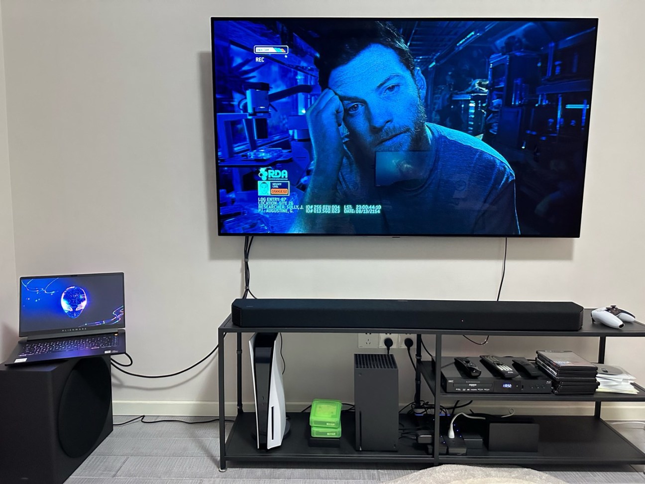 御三家主機不用多說,lg oled65c2兼顧觀影與遊戲,是電視中的不二之選,配合三星q950a迴音壁,11.1.4聲道不管是打遊戲還是看電影都能包裹感拉滿,電影這塊配備了一臺傑科g5800藍光機,雙層杜比解碼配合4kuhd藍光碟,影院老闆見了都說好