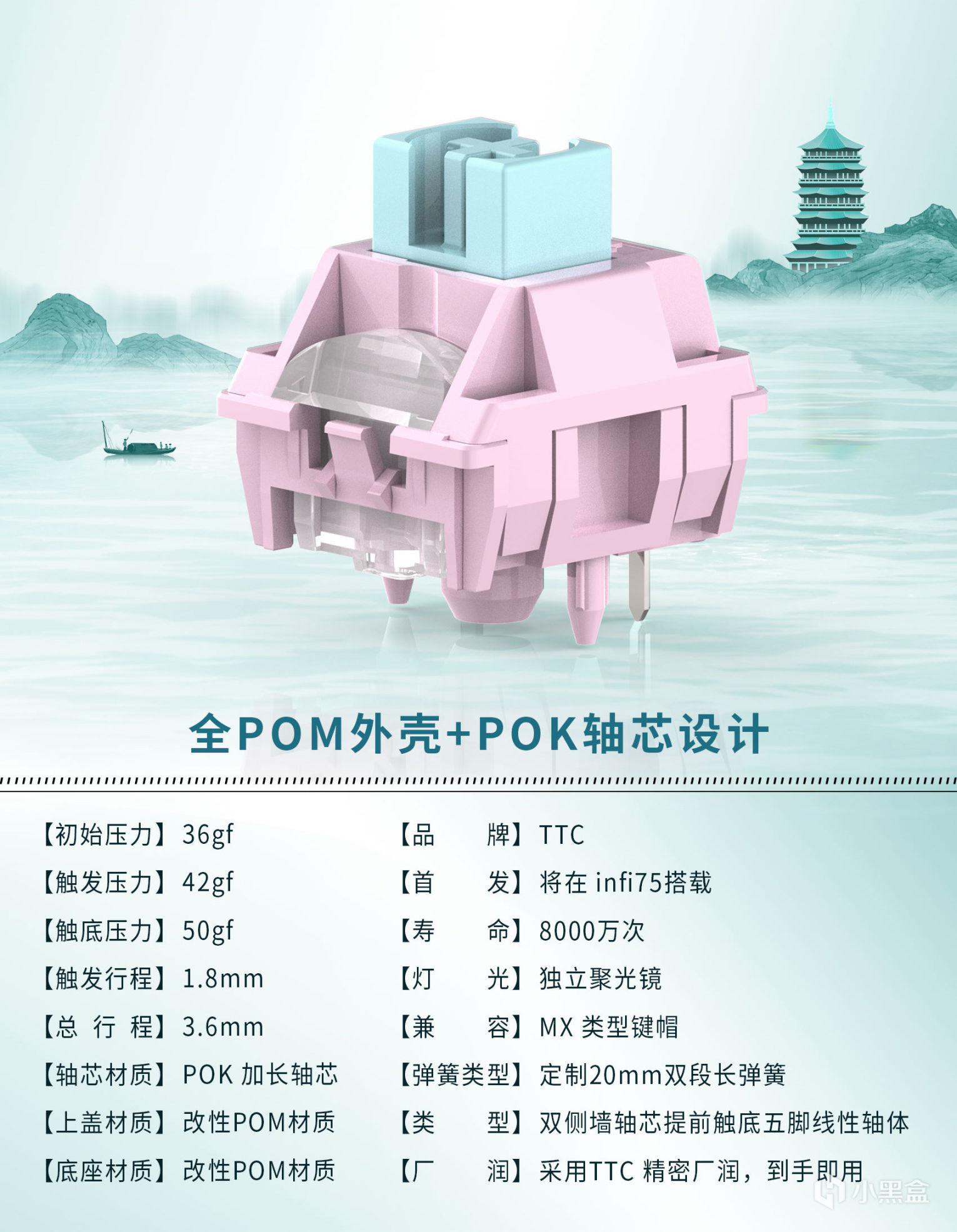 轴体采用的是和TTC联合定制的TTC西子轴,目前也仅有INFI75独占。