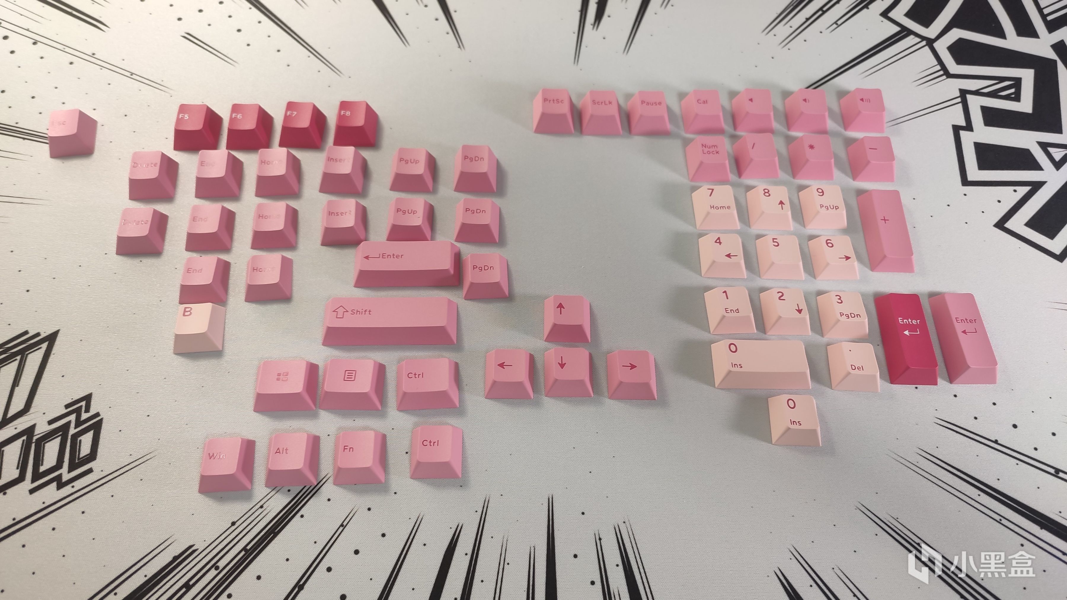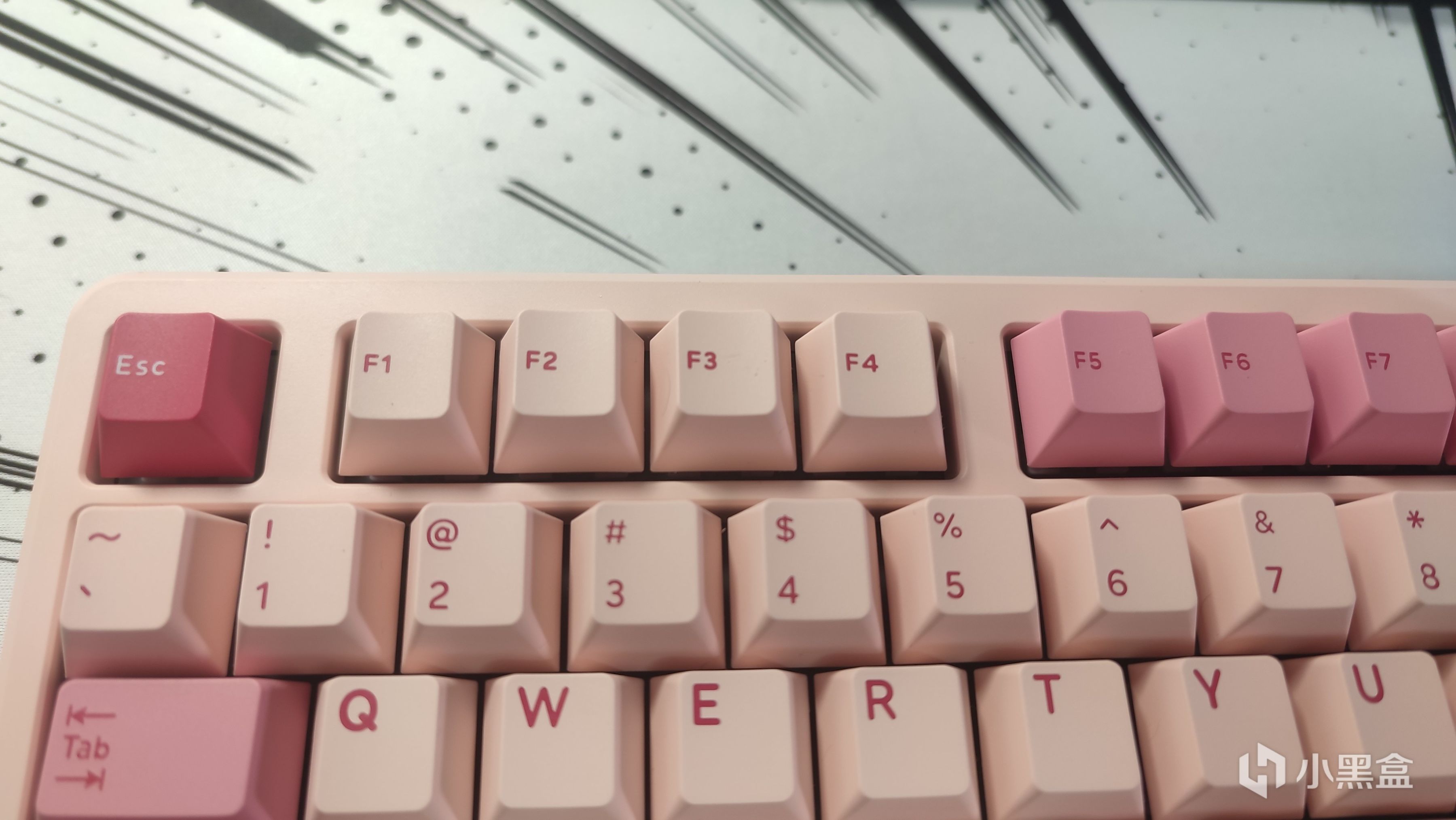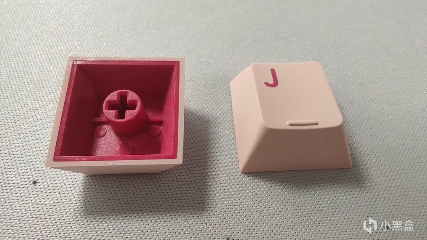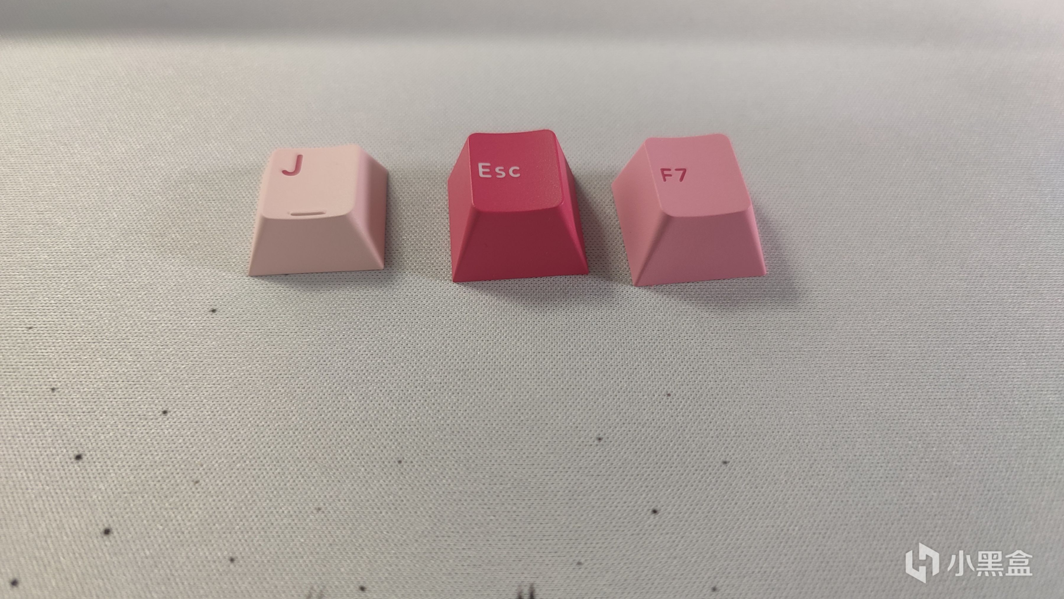 目前三套成品搭载的键帽均为二色键帽,因为其他两套成品版本的键帽我没有这里就不多说,仅讲解本次拿到的芭比粉版本。