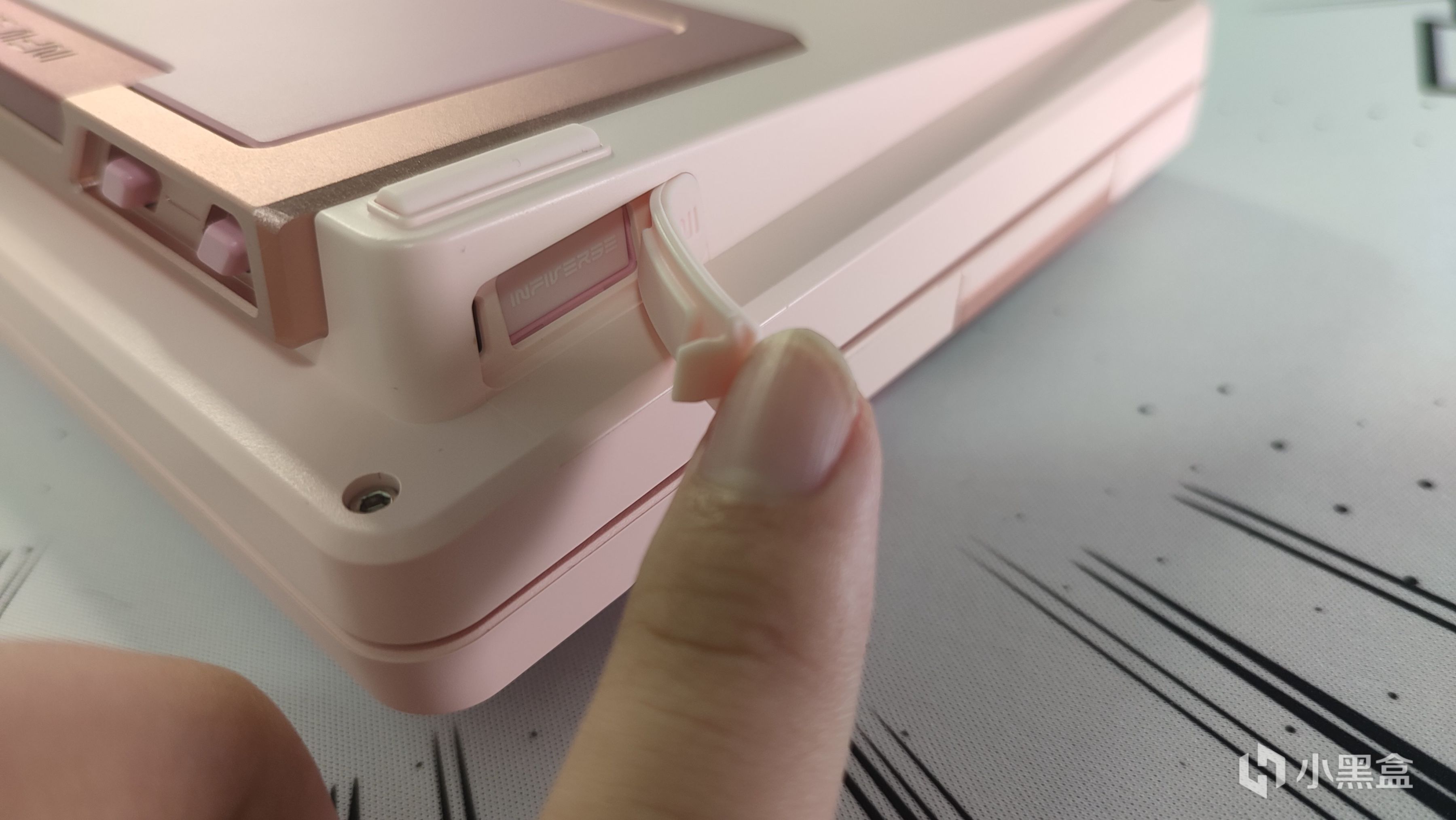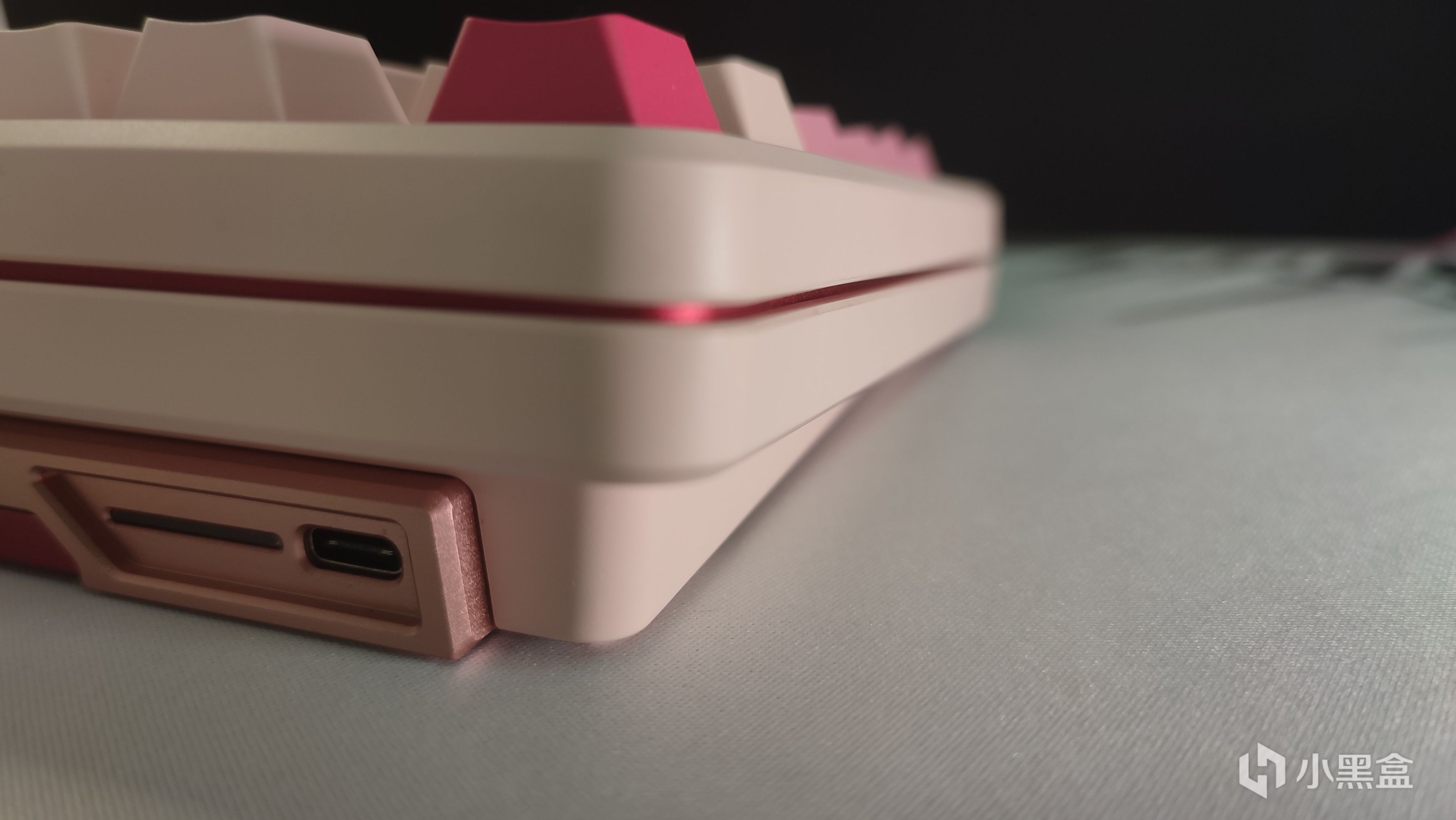 接收器收纳仓放到了键盘右侧位置,日常使用基本不是贴着桌面看还是不容易看到的。不过由于没有设计磁吸设计外面增加了一个套来防止掉落,首发版本还存在不容易打开的情况,不过几个月过去了这个问题也已经改了。