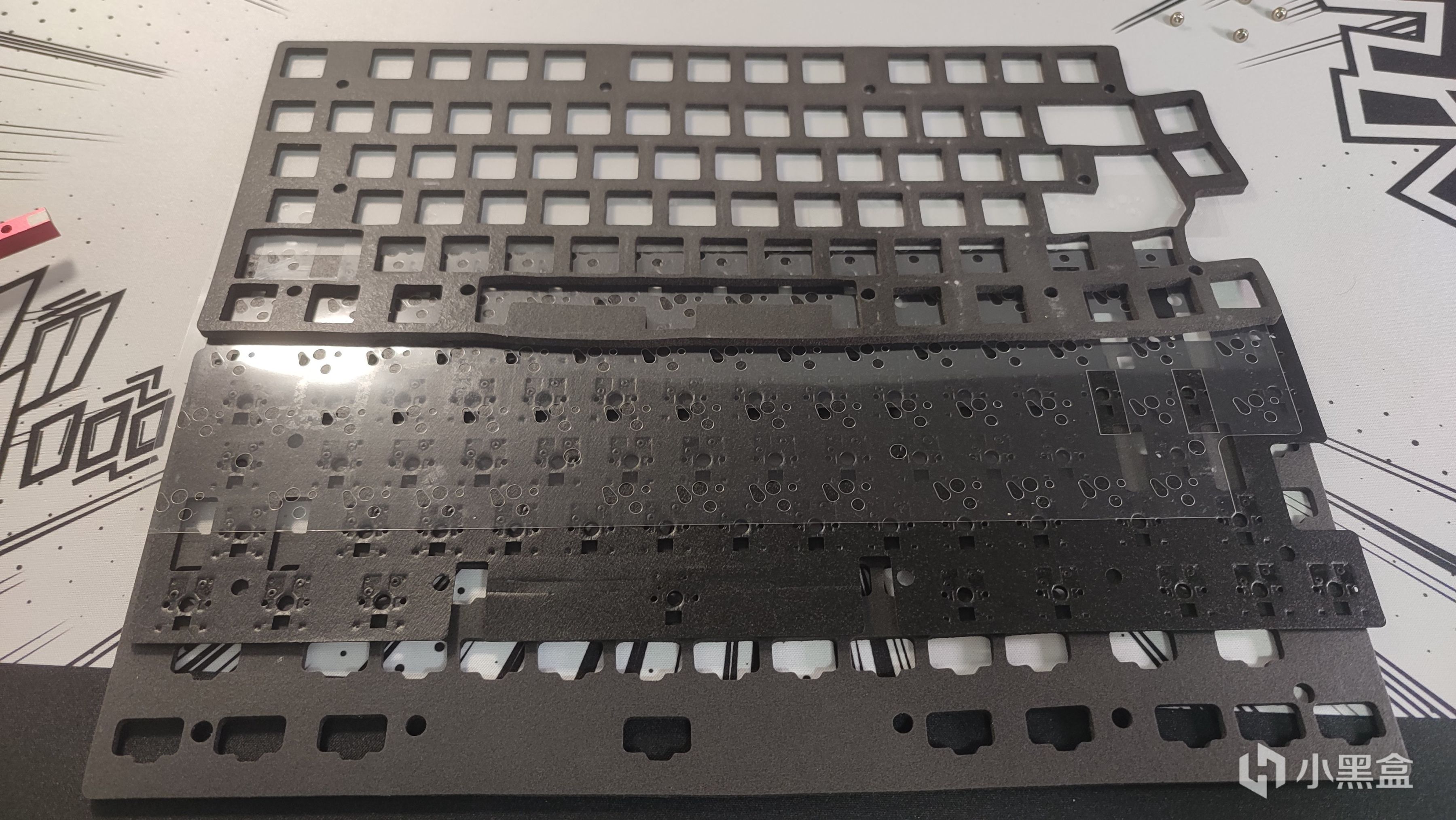 底棉其实我觉得叫轴座棉会更适合,因为这块棉对轴座位置都进行了开槽,更好的减少了PCB以及底壳之间的空隙,所造成的杂音空腔音会更少。