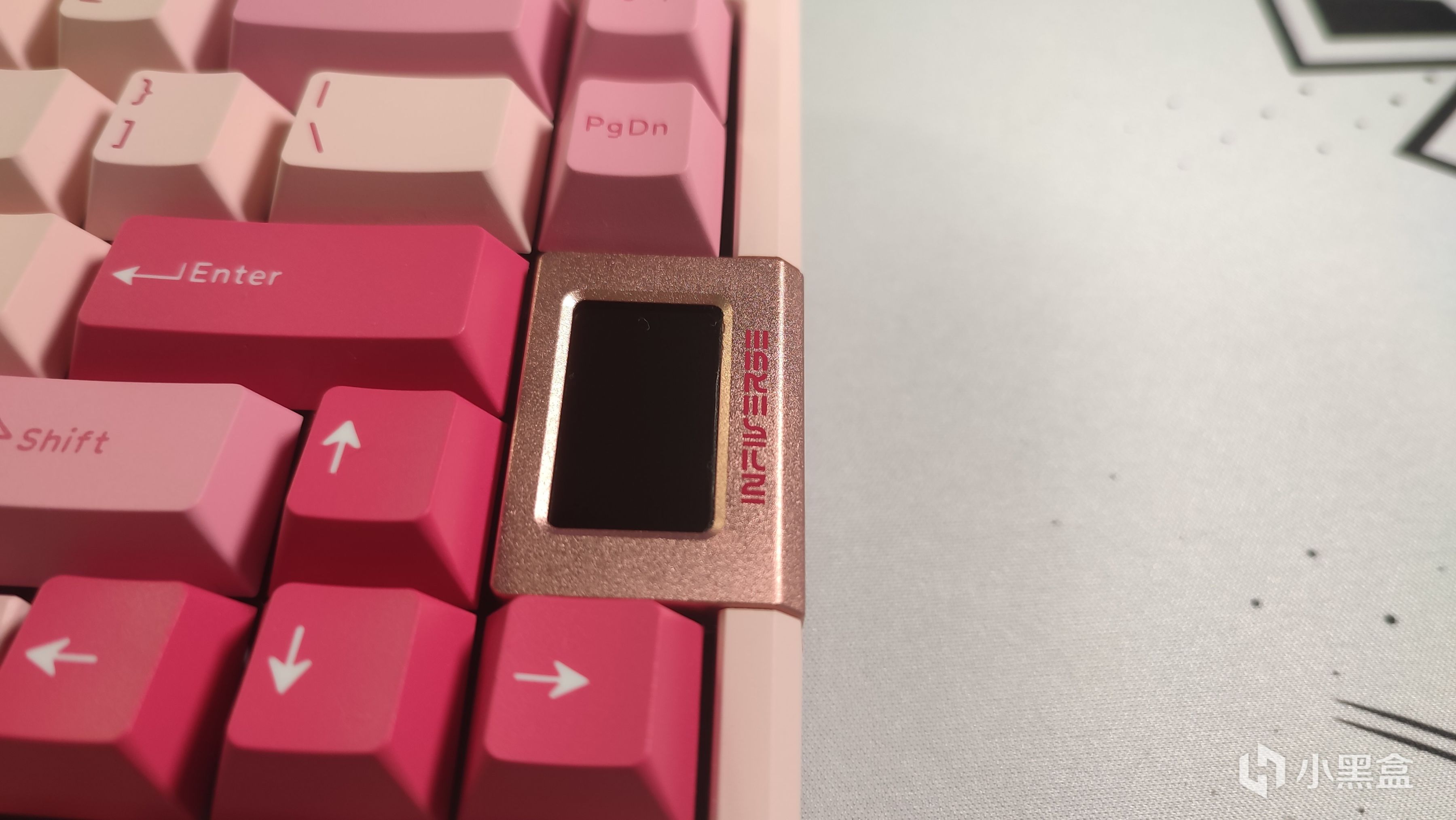 INFI75采用的是75%配列,但不是很标准的75%,可以看到右下角原先应该是功能键的区域做出了一块屏幕,这个屏幕后面再说,其他则没太大改变,该有的都有。