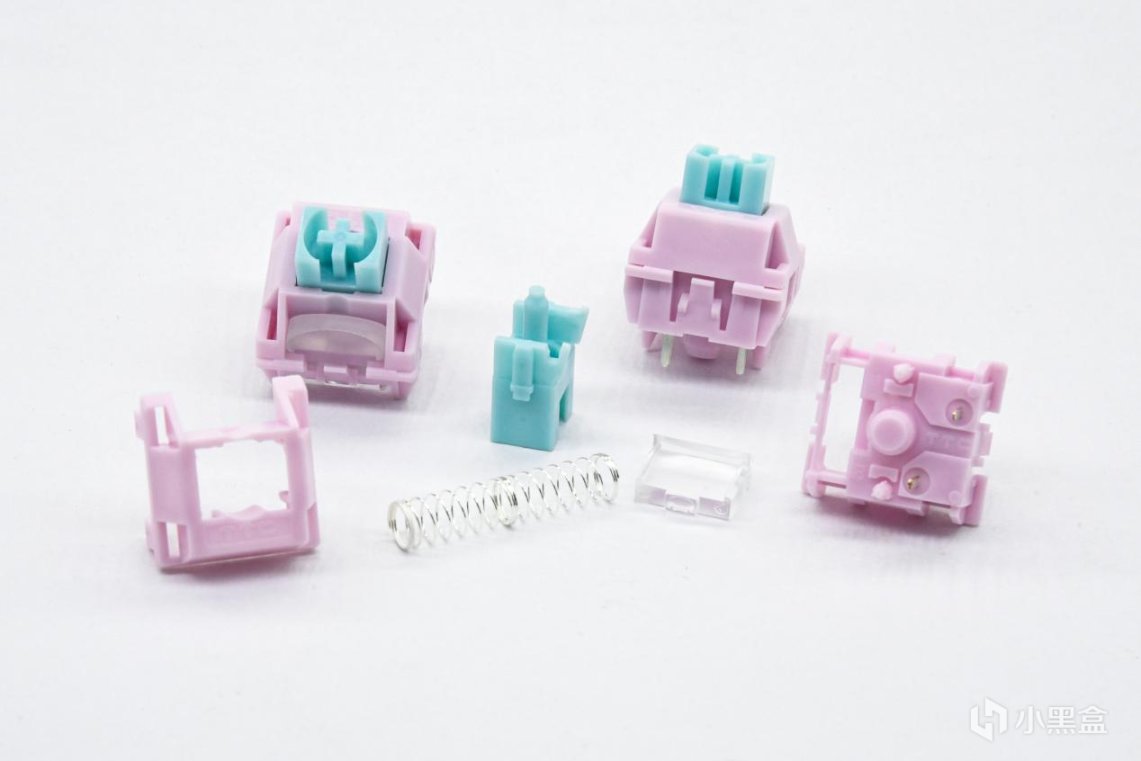 材料方面,采用的是目前键圈主流方案全POM材质,不过不同的是将轴芯更换为了POK,仅保留外壳使用POM,一方面增加了轴芯的顺滑度,一方面也保留了POM的特性-自润滑。