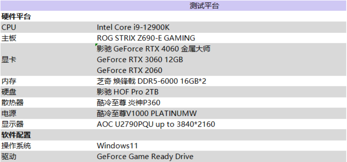 首先來看一下影馳 GeForce RTX 4060 金屬大師,GeForce RTX 3060 12GB和GeForce RTX 2060的規格參數對比: