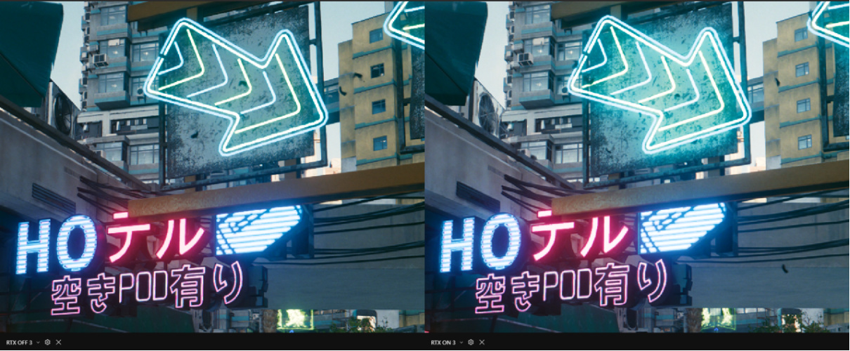 除了自然光線的體現,這種充斥着“燈紅酒綠”氛圍的霓虹燈也將是光線追蹤技術的重點優化對象。開啓光線追蹤技術後的遊戲畫面,將變得更爲生動,給與玩家們一種彷彿置身其中的優越視感。