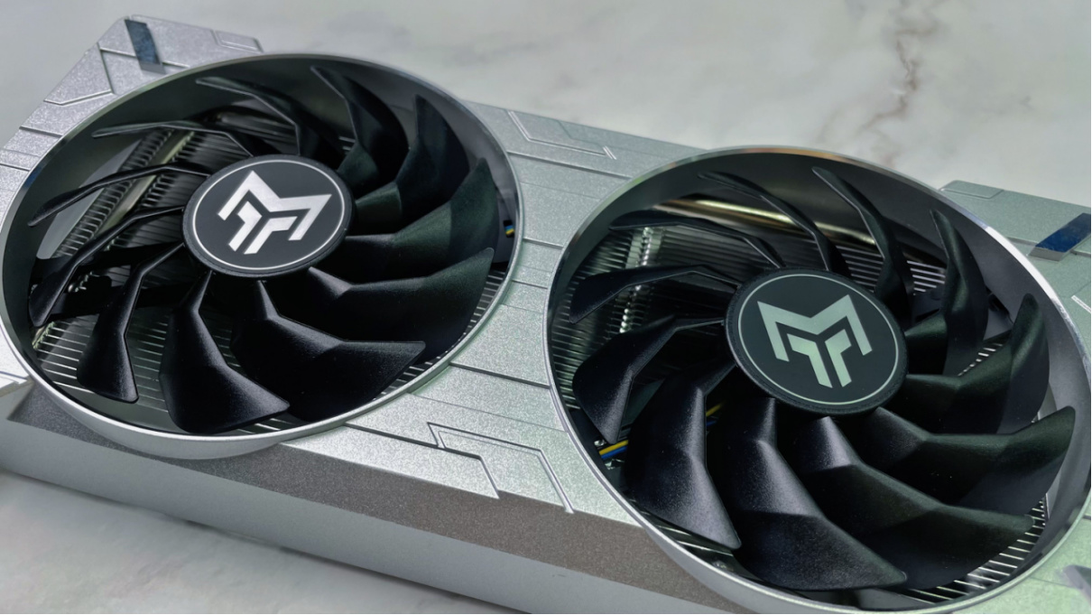 影馳 GeForce RTX 4060 金屬大師採用全新一代寒光星δ(德爾塔)散熱系統,配備 2 個直徑 92mm,厚度 20mm 的高規格風扇,每個風 扇擁有 11 片靜霜扇葉,可以實現更高風壓更大風量並支持智能啓停。雙風扇的設計,讓影馳 GeForce RTX 4060 金屬大師的體型更小,爲玩家們帶來更高的裝機自由度和便利性。