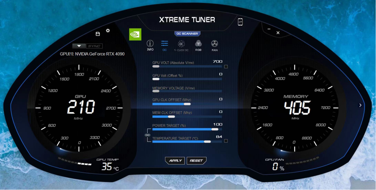 影馳顯卡專屬調控軟件——影馳 XTRME TUNER 魔盤軟件。支持 、燈效調控控(金屬大師系列顯卡沒有 RGB 燈效),支持 Scanner等功能。讓玩家輕鬆實現超頻,溫度監控等等,還有更多新功能等待發掘,盡請期待!