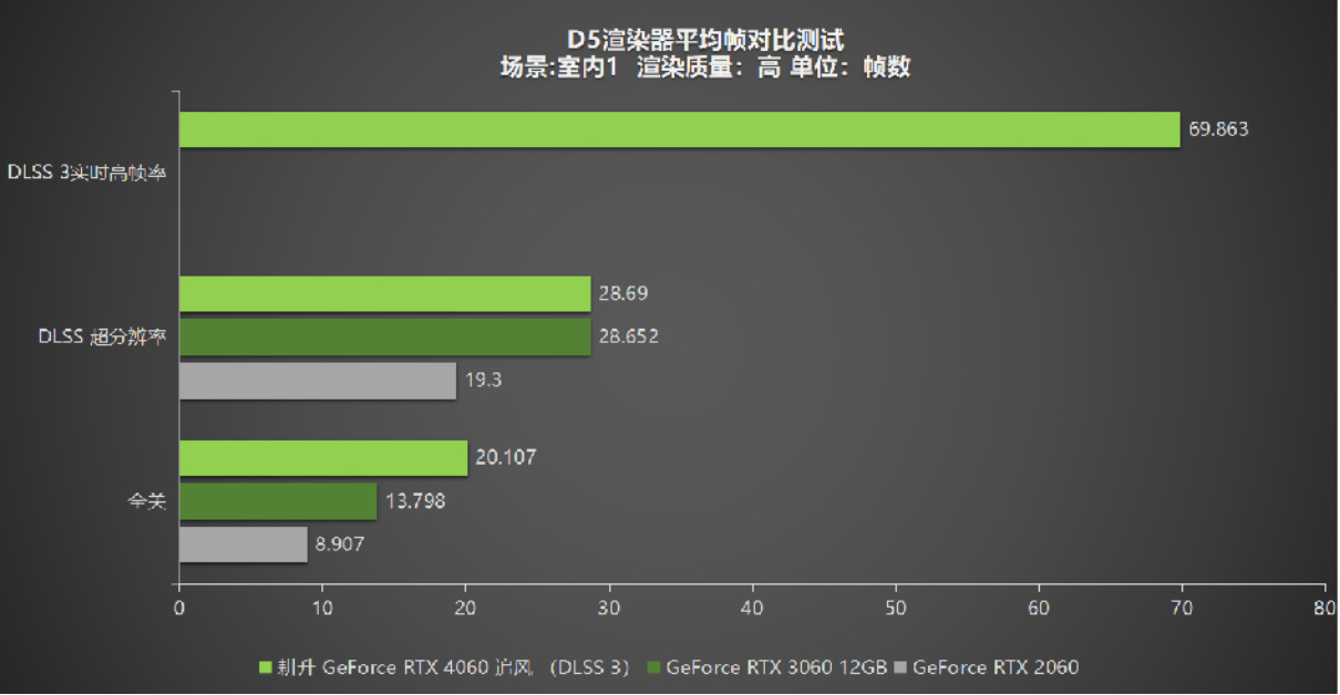 近日,最新版本的D5渲染器也对NVIDIA DLSS 3技术进行了最新适配,此次测试种我们使用了耕升 GeForce RTX 4060 追风 、GeForce RTX 3060 和GeForce RTX 2060分别在两种场景下测试,接下来让我们来看看实际表现吧。