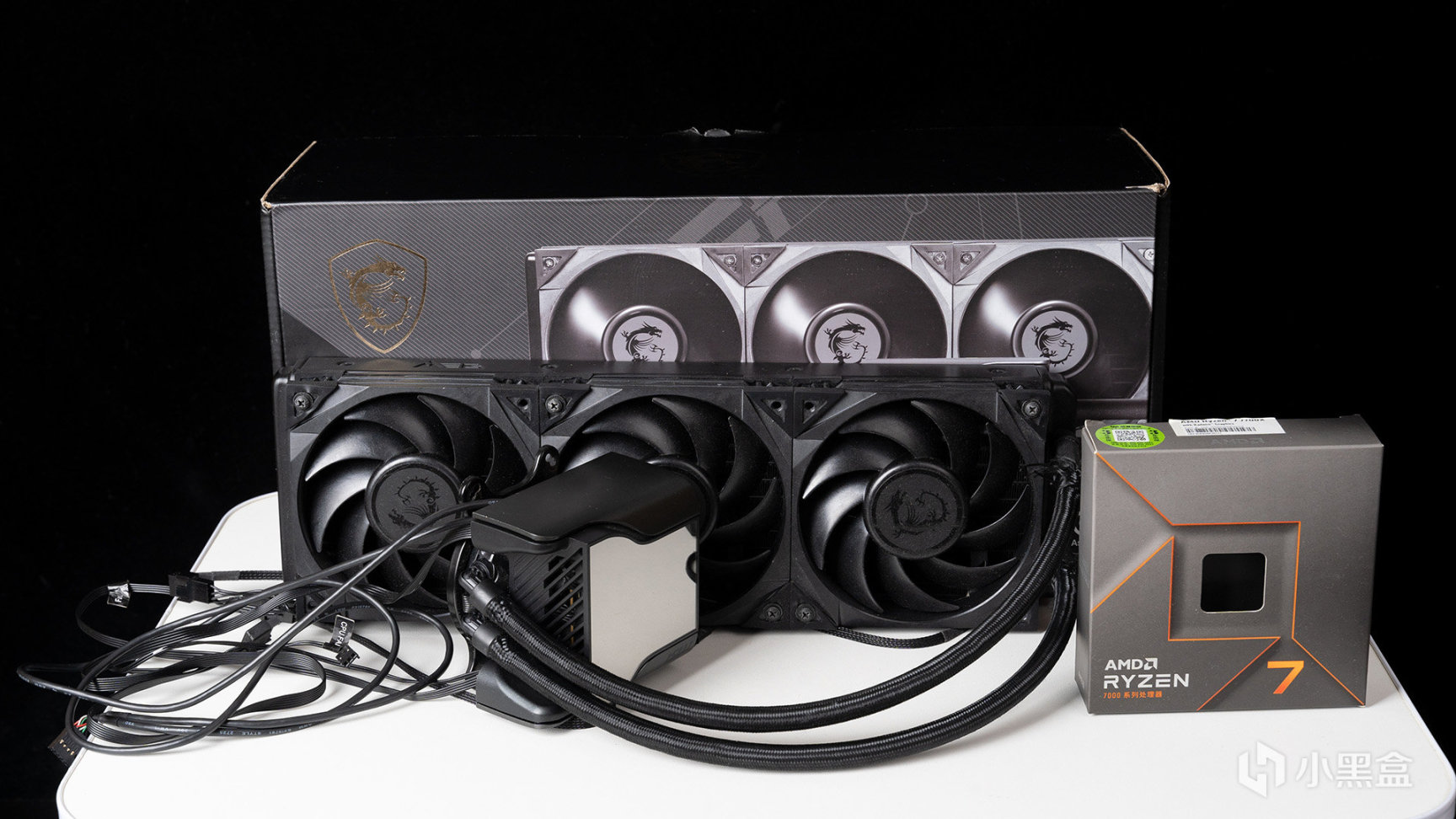 CPU散热器则是来自微星的MEG CORELIQUID S360,定位自家旗舰产品,采用Asetek第七代水泵技术,最大的卖点是搭载了一块2.4英寸IPS显示屏,可满足监控PC工况、播放视频、GIF等个性化需求,全身也是黑色化处理,和MAG B650M MORTAR WIFI迫击炮简直就是百搭。