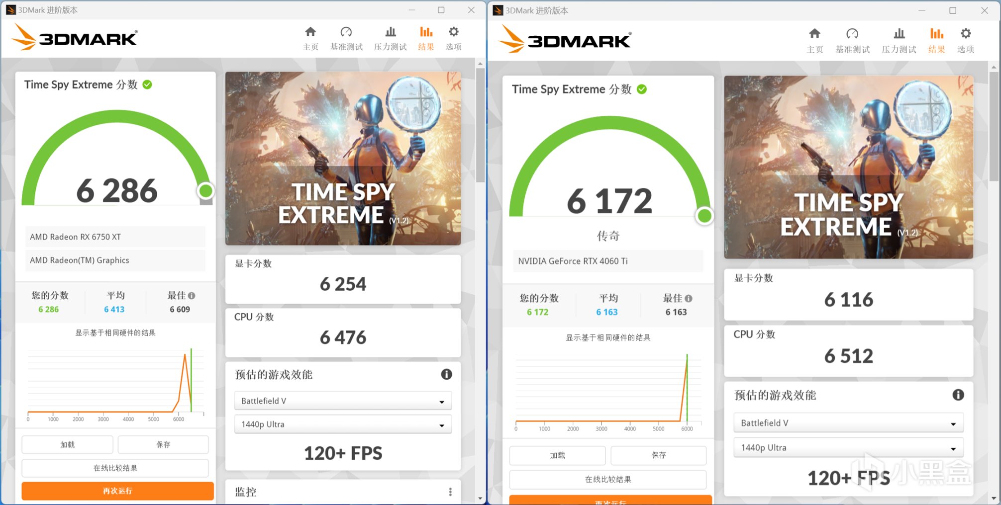 3DMark Time Spy Extreme项目,RX 6750 XT显卡分数为6254,RTX 4060 Ti显卡分数为6116