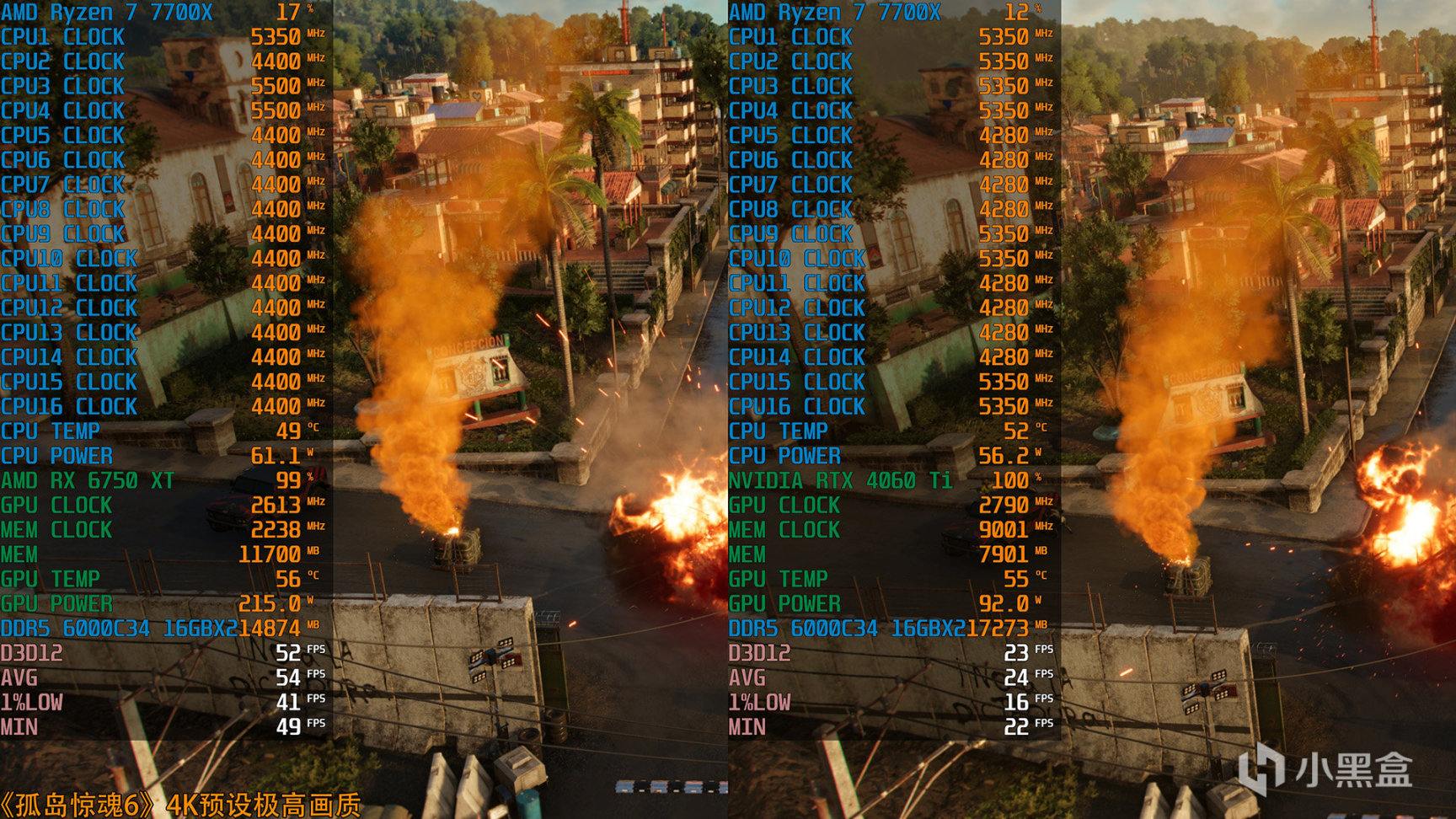 《孤岛惊魂6》4K预设极高画质两款显卡的OSD工况