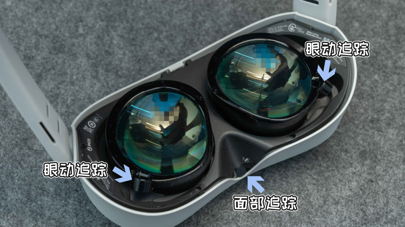 VR设备能带来超强的沉浸感,清晰度也是不可忽视的部分,除了双目4K+超视感屏外,瞳距的匹配也非常重要,PICO 4 Pro通过两颗眼动追踪摄像头+自研IPD算法实现了智能无级瞳距调节的功能,首次开机时会自动进行“瞳距调节”,用户只需根据画面内容,跟着提示点转动眼球就可快速完成瞳距调节。